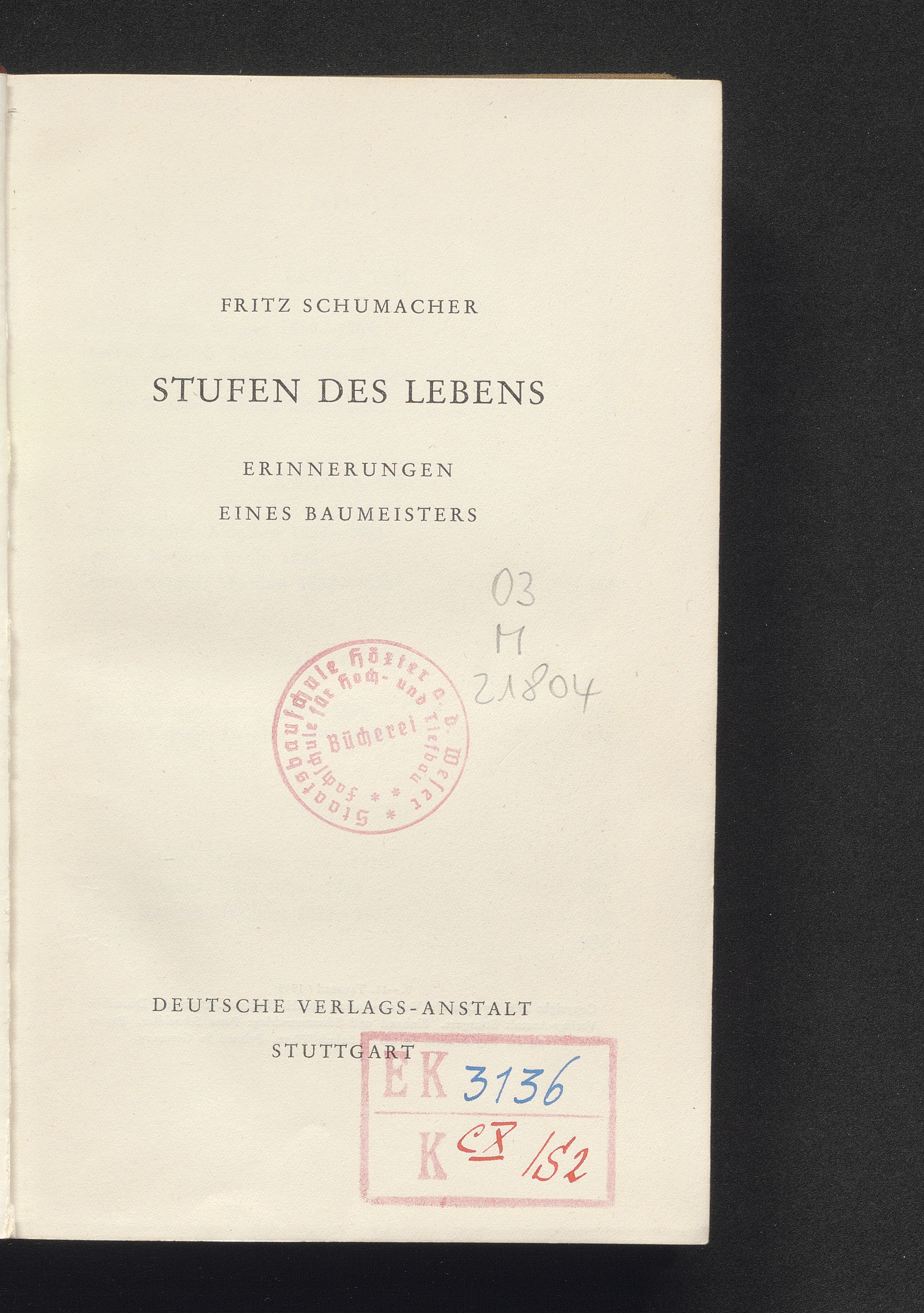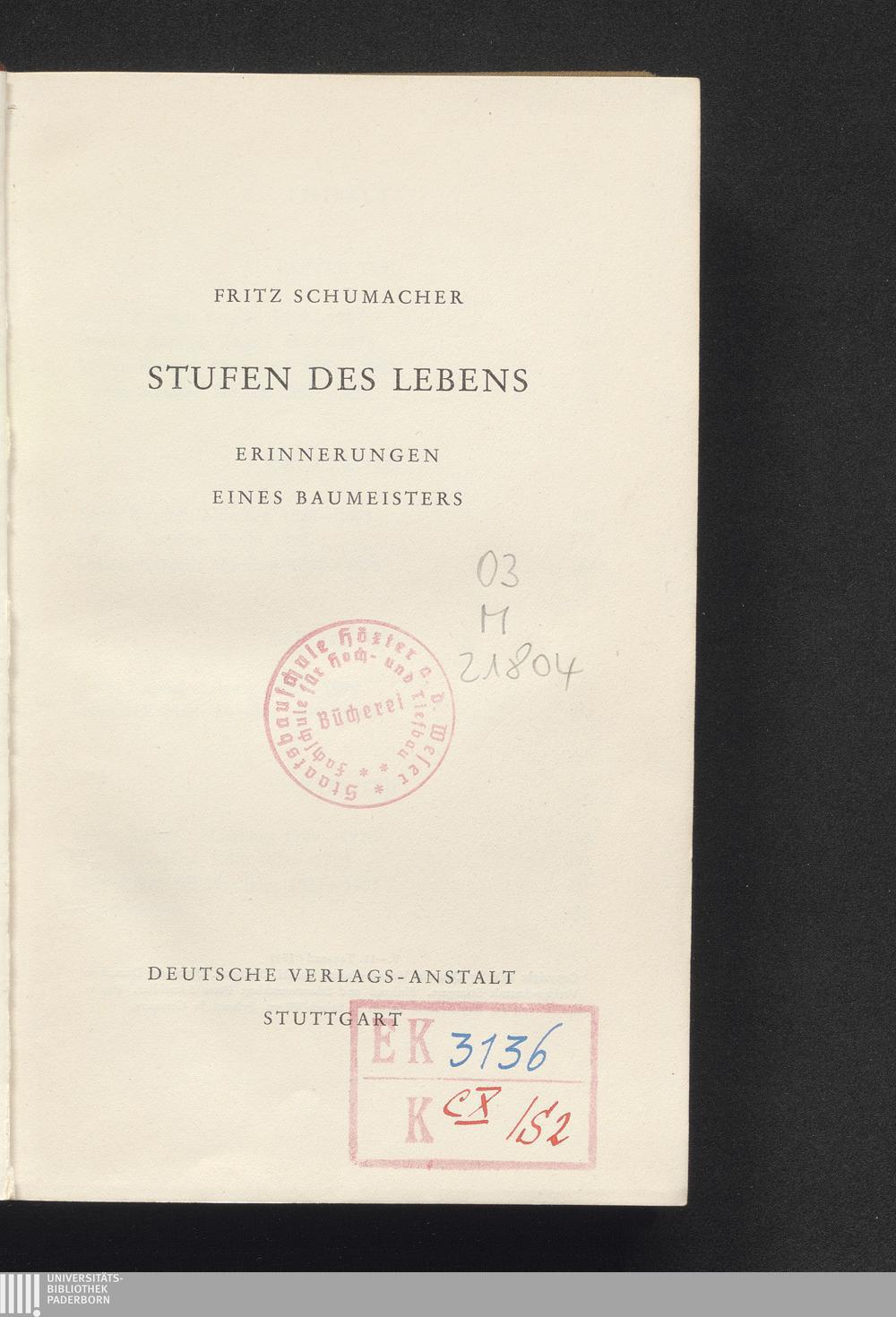 Stufen des Lebens : Erinnerungen eines Baumeisters / Fritz Schumacher