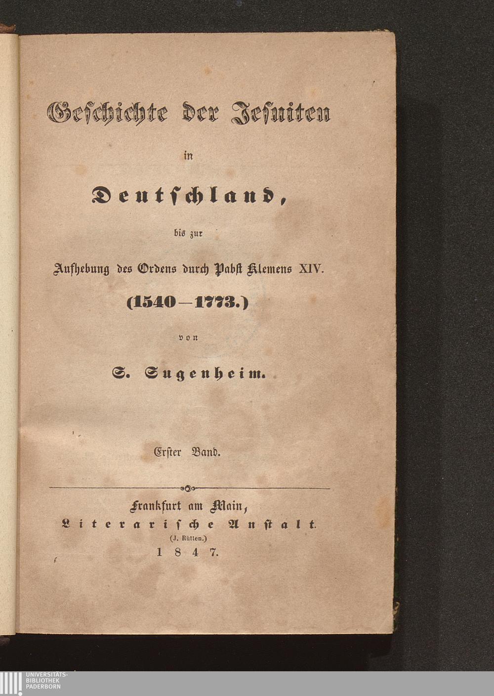 Geschichte der Jesuiten in Deutschland, bis zur Aufhebung des Ordens durch Pabst[...]