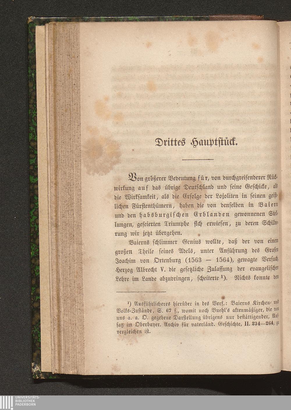 Drittes Hauptstück. Die Söhne des heil. Ignaz in Baiern in den Tagen der Herzoge Albrecht V. und Wilhelm V. Kaiser Maximilian II. und die Jesuiten. Einfluß dieser auf seinen Nachfolger Kaiser Rudolph II. und Benützung desselben. Die Lojoliten in Inneröstreich unter der Regierung des Erzherzogs Karl. Die Universität Grätz. Ferdinand, Karls Sohn, und Maximilian I. von Baiern in der Schule der frommen Väter zu Ingolstadt. Das Trügerische der Lehren, die sie daselbst von diesen empfingen, ...