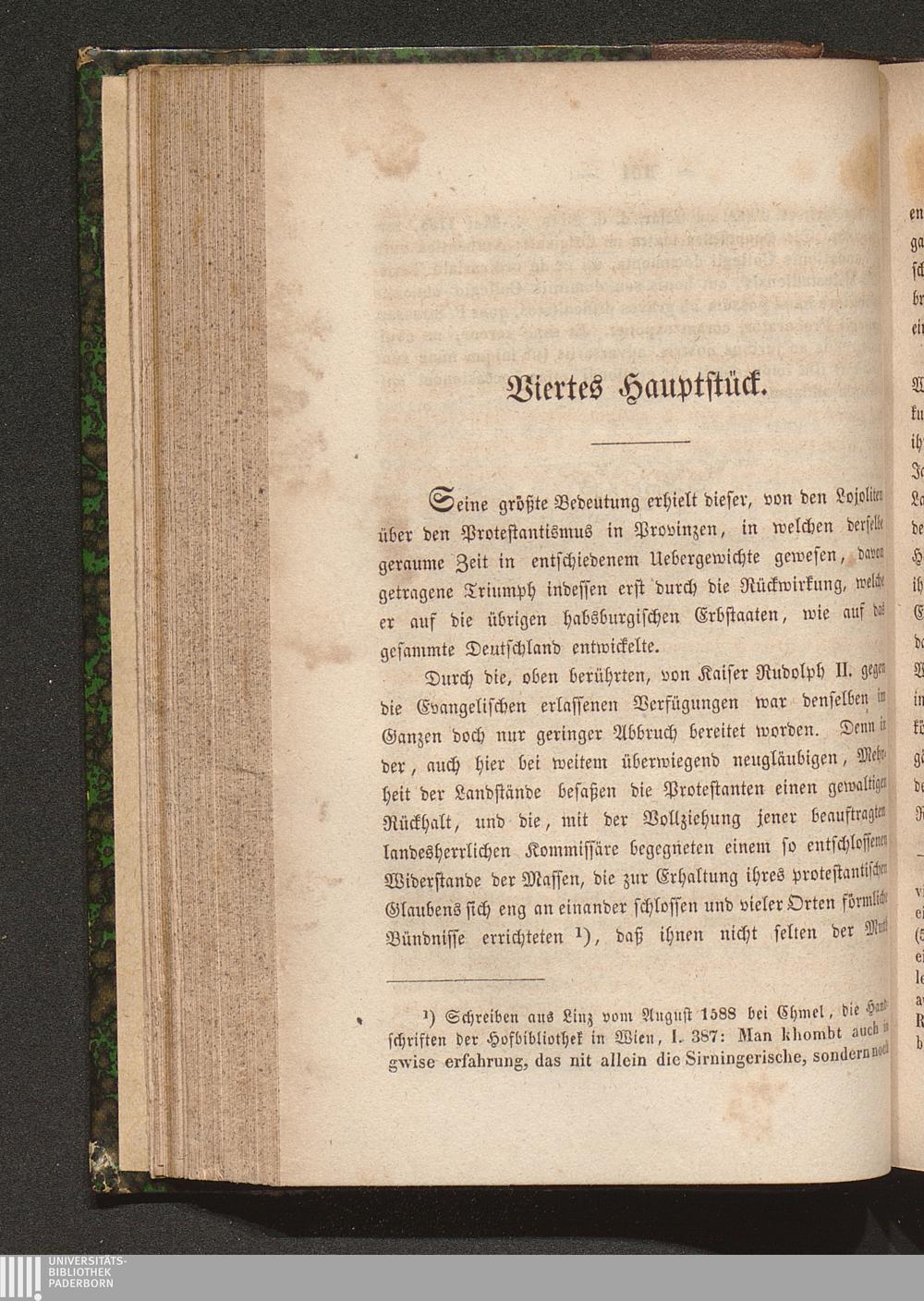 Viertes Hauptstück. Ewige Jugend der Gebrechen Oestreichs. Der oberöstreichische Bauernaufstand in den Jahren 1595-1597, und dessen Ausbeutung durch die Jesuiten. Gegenreformations-Versuche im Erzherzogth. Oestreich, in Böhmen und Ungarn. Schlimme Wendung der Dinge im letzten Lande für den Kaiser. Merkwürdiges Gutachten der Jesuiten. Rudolph II. und sein Bruder Mathias. Der wiener Vertrag vom 23. Juni 1606, des Kaisers Verblendung und deren Folgen. Der Lojoliten Rolle in diesen Händeln. ...