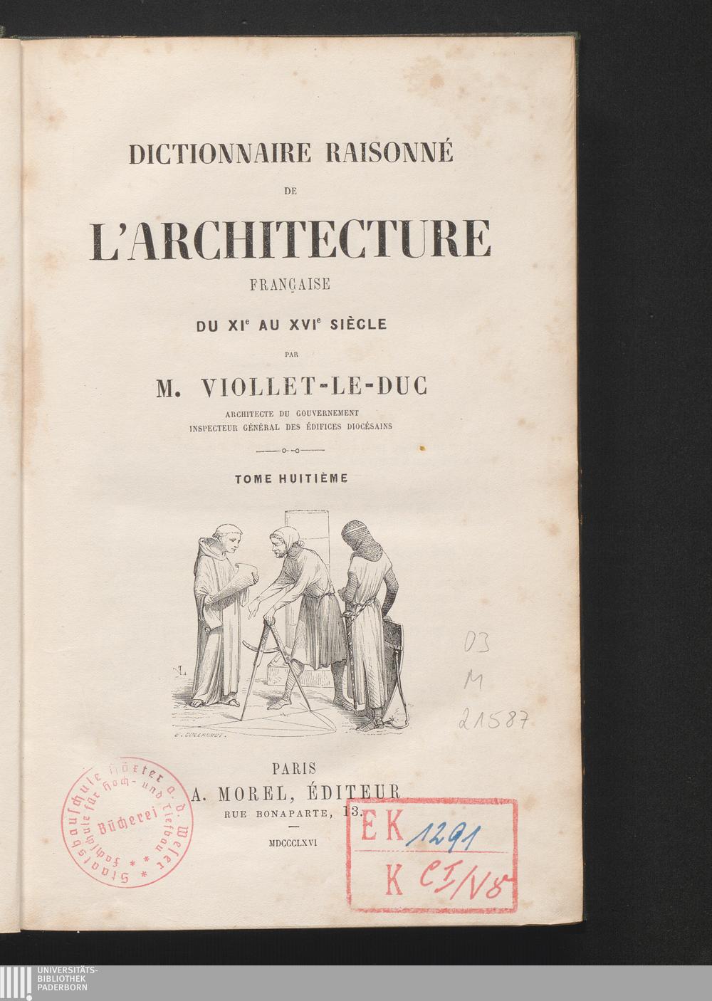 8 (1866) Dictionnaire raisonné de l'architecture française du XIe au XVIe siècle / par M. Viollet-le-Duc. 8.