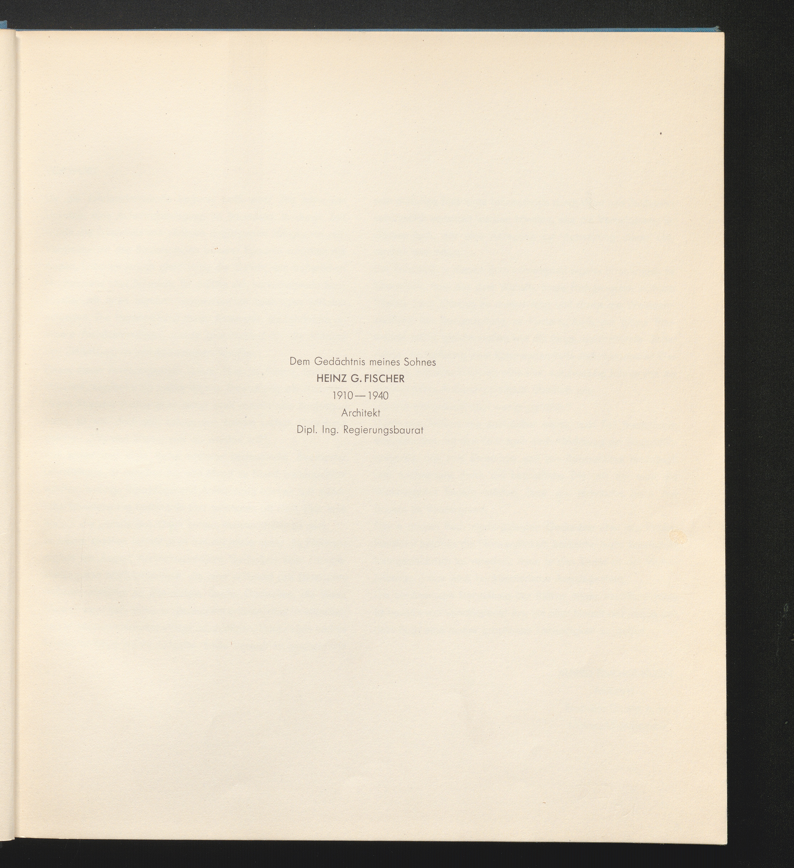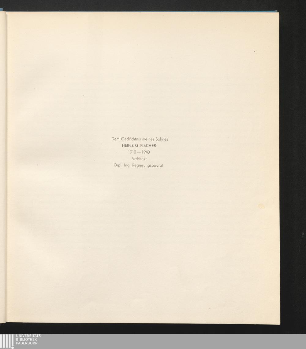 Dem Gedächtnis meines Sohnes Heinz G. Fischer 1910-1940 Architekt Dipl. Ing. Reg[...]