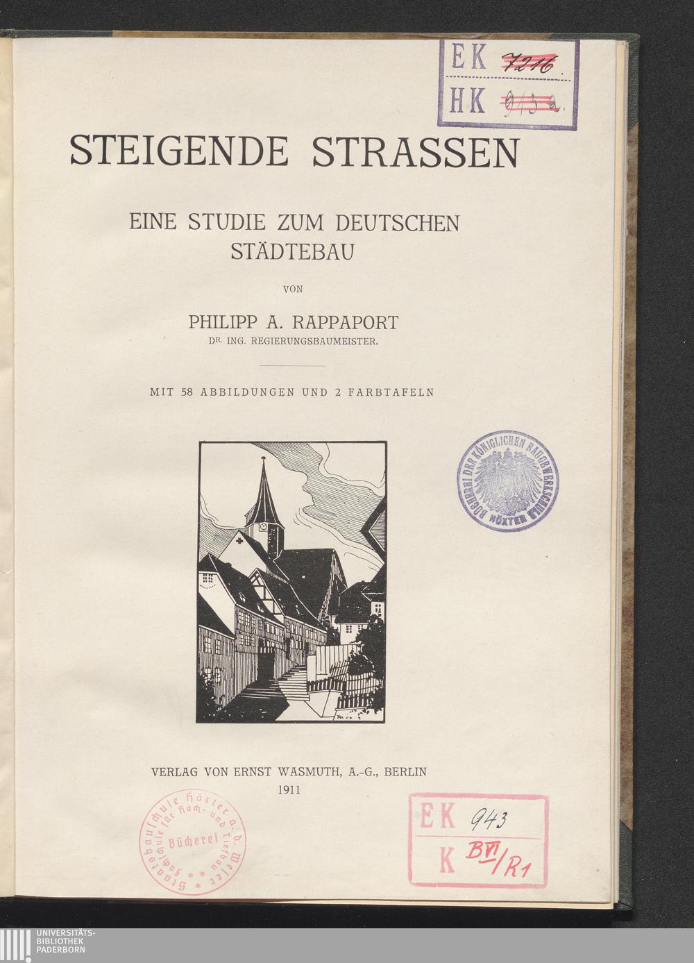 Steigende Straßen : eine Studie zum deutschen Städtebau / von Philipp A. Rappaport