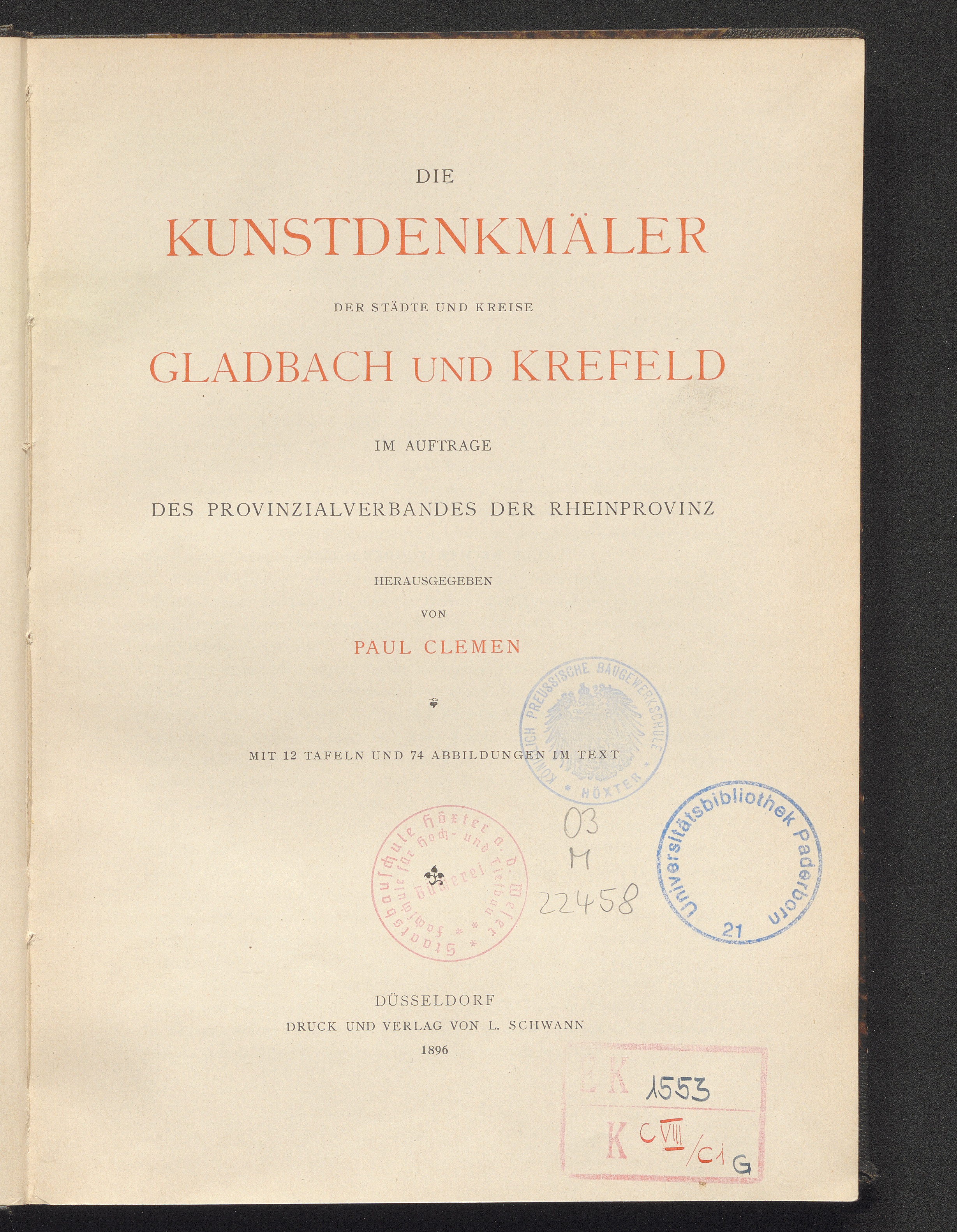 Die Kunstdenkmäler der Städte und Kreise Gladbach und Krefeld / hrsg. von Paul Clemen