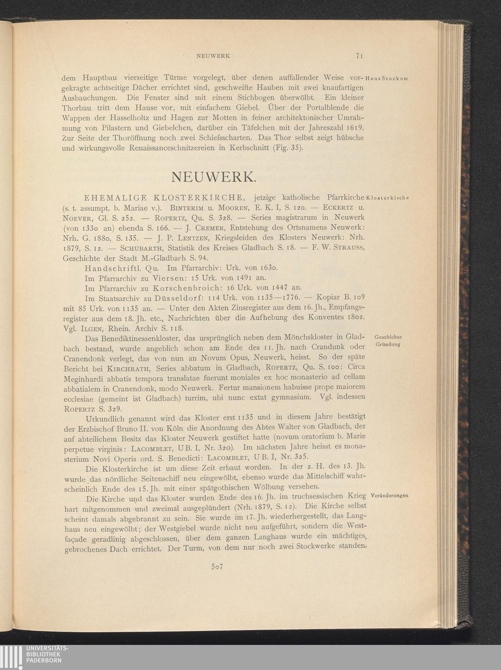 Die Kunstdenkmäler der Städte und Kreise Gladbach und Krefeld