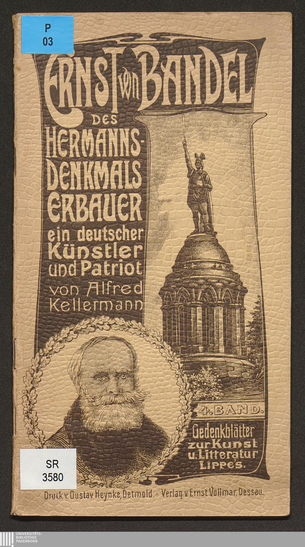 Ernst von Bandel, des Hermanndenkmals Erbauer, ein deutscher Künstler und Patriot : ein Gedenkblatt / von Alfred Kellermann