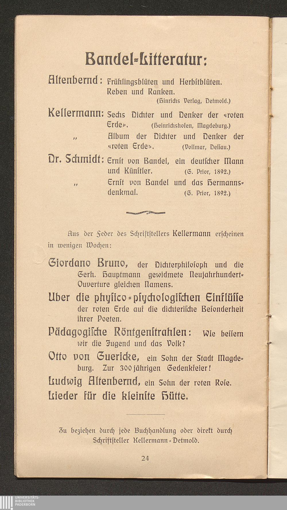Ernst von Bandel, des Hermanndenkmals Erbauer, ein deutscher Künstler und Patriot : ein Gedenkblatt / von Alfred Kellermann