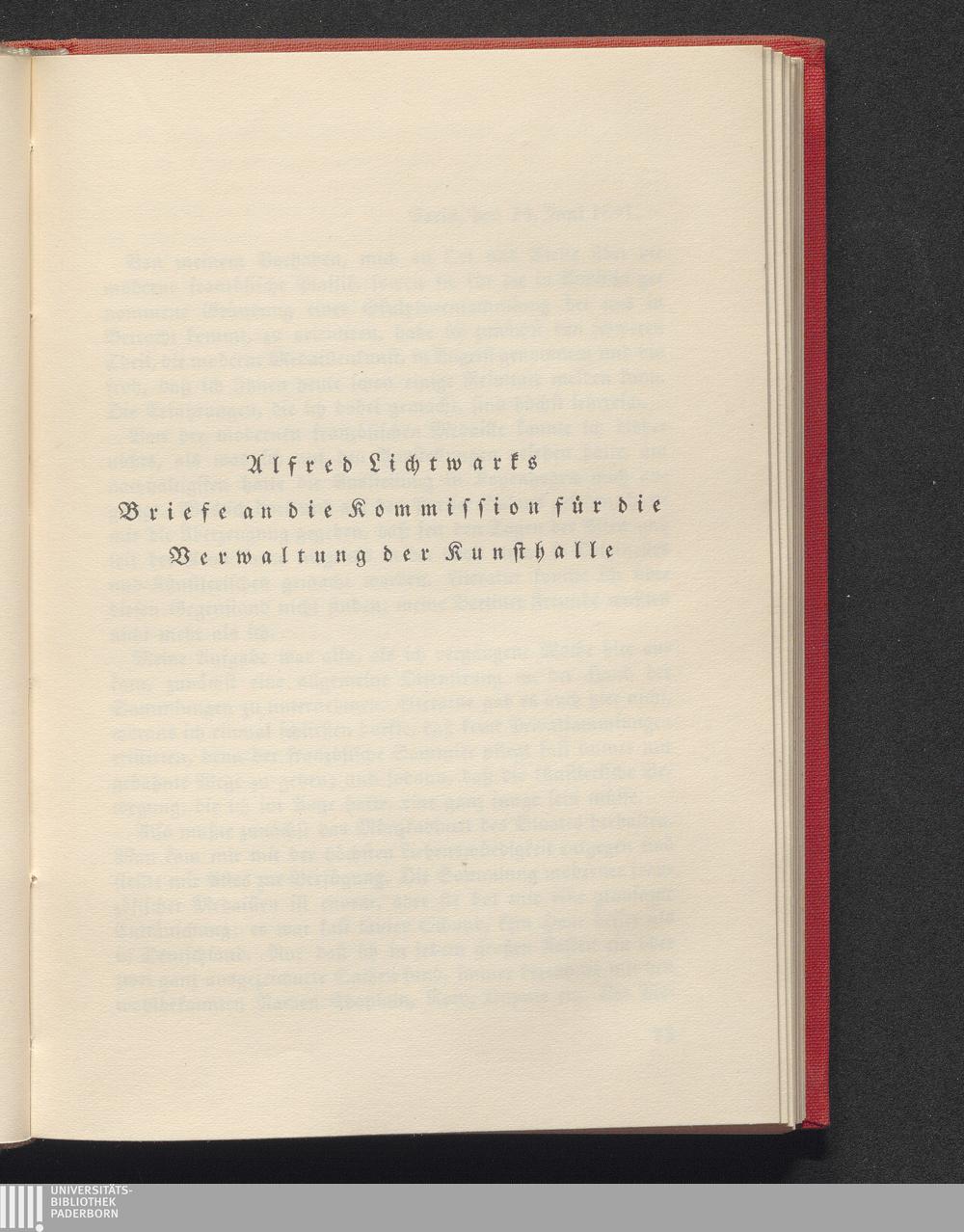 1 (1924) Briefe an die Kommission für die Verwaltung der Kunsthalle / Alfred Lichtwark. In Ausw. mit einer Einl. hrsg. von Gustav Pauli. 1.