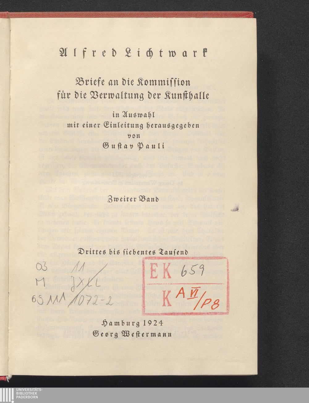 2 (1924) Briefe an die Kommission für die Verwaltung der Kunsthalle / Alfred Lichtwark. In Ausw. mit einer Einl. hrsg. von Gustav Pauli. 2.