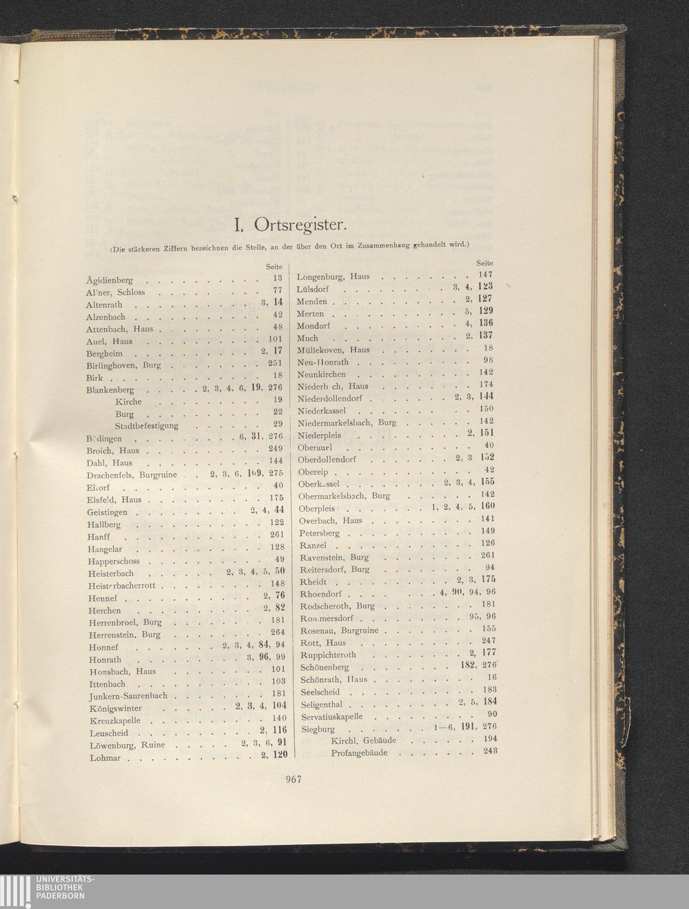 I. Ortsregister.