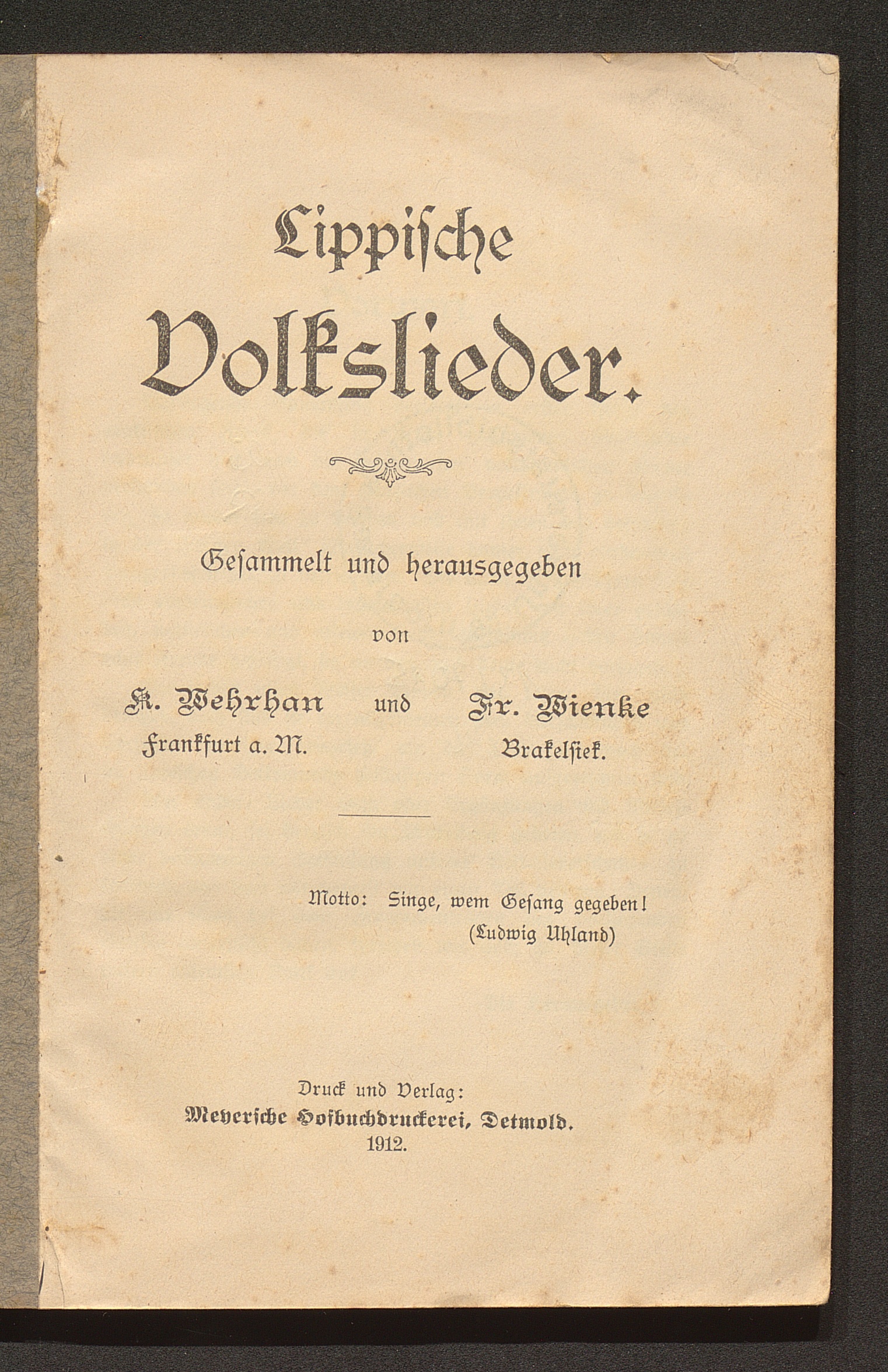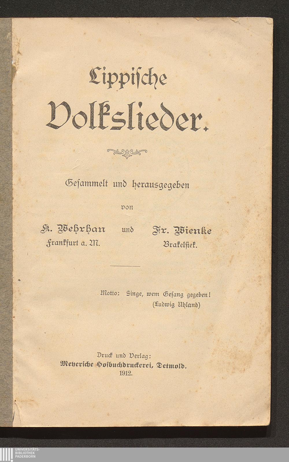 Lippische Volkslieder / gesammelt und hrsg. von K. Wehrhan und Fr[iedrich] Wienke