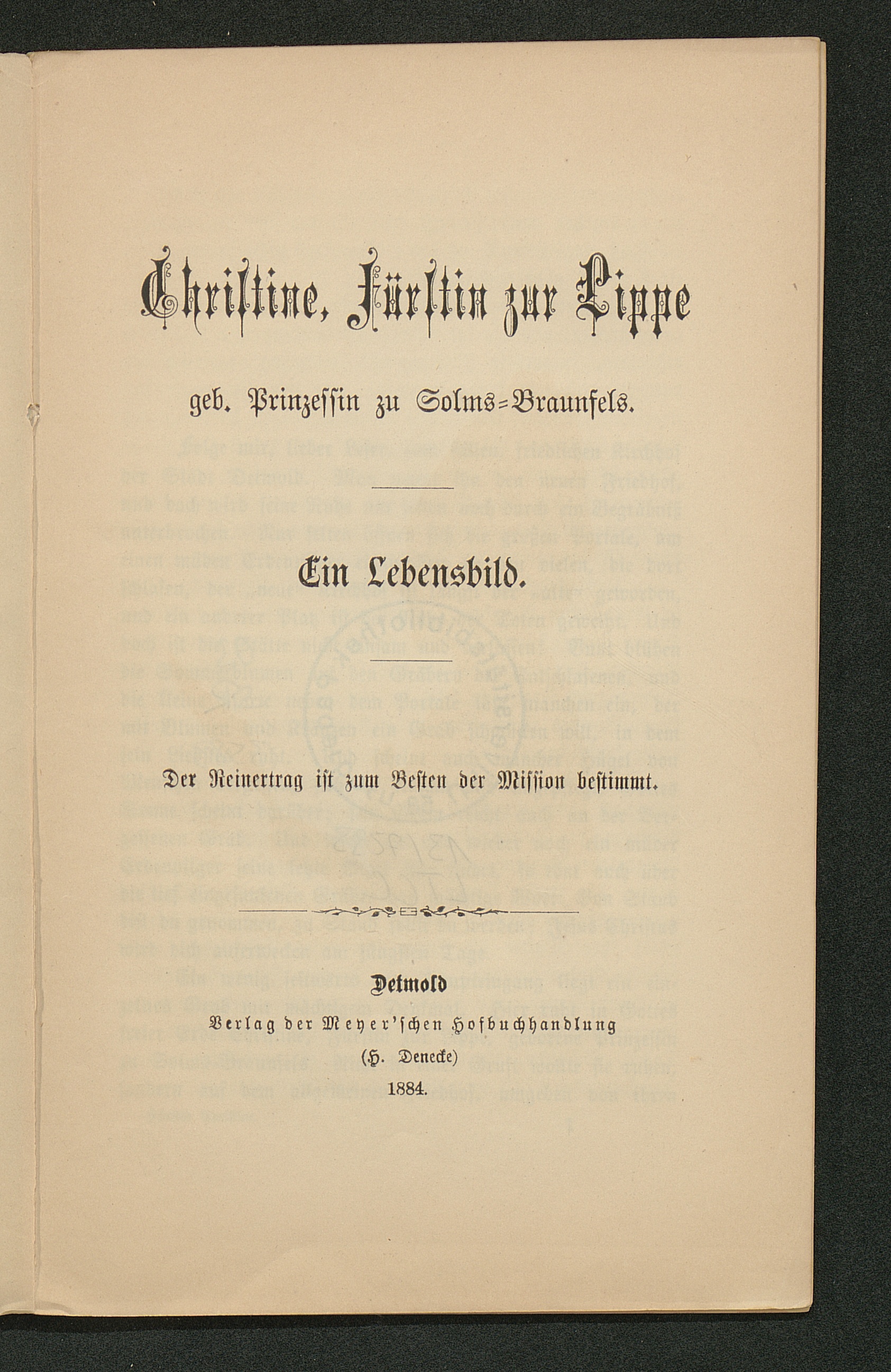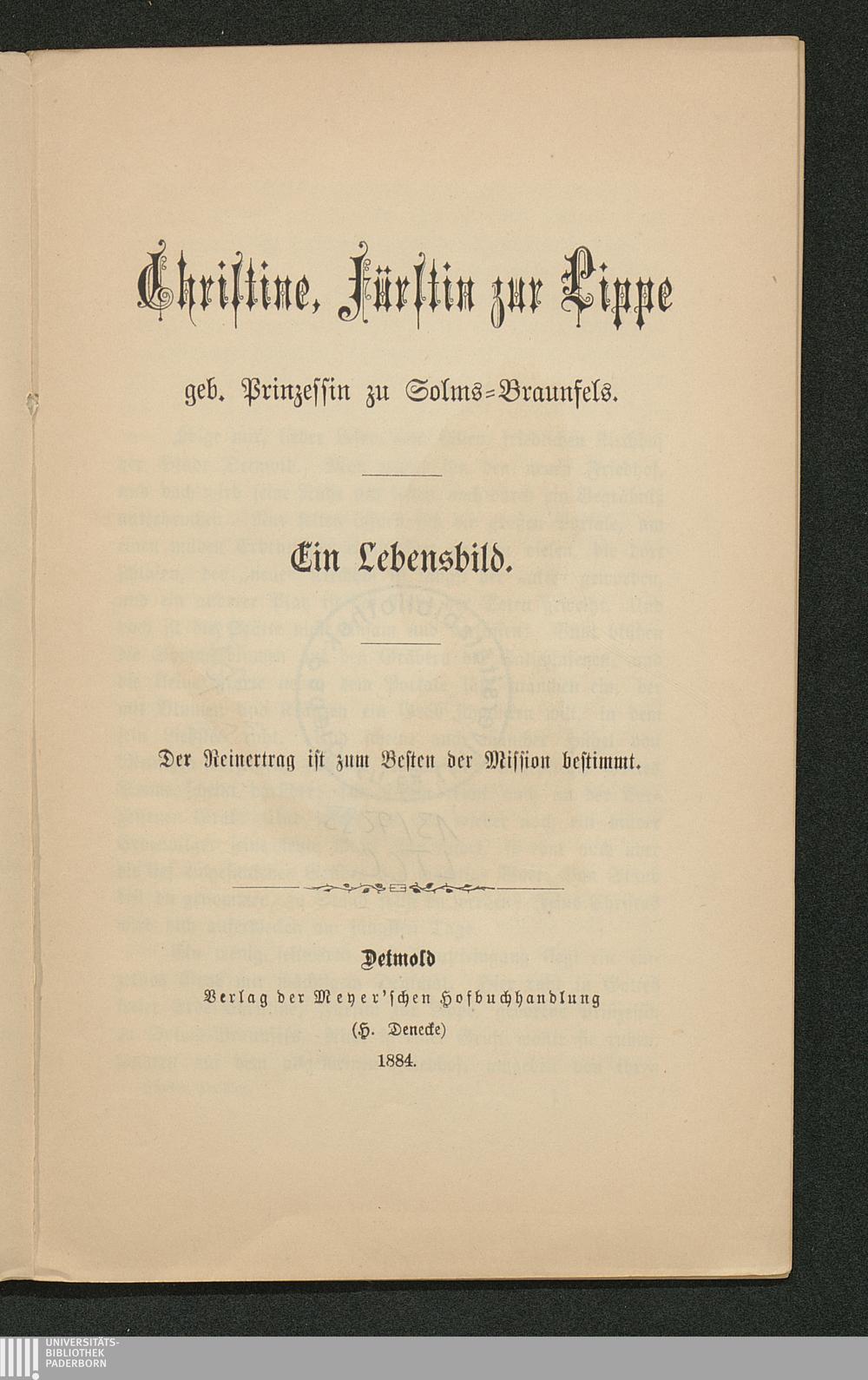 Christine, Fürstin zur Lippe, geb. Prinzessin zu Solms-Braunfels : ein Lebensbild / [Luise Koppen]