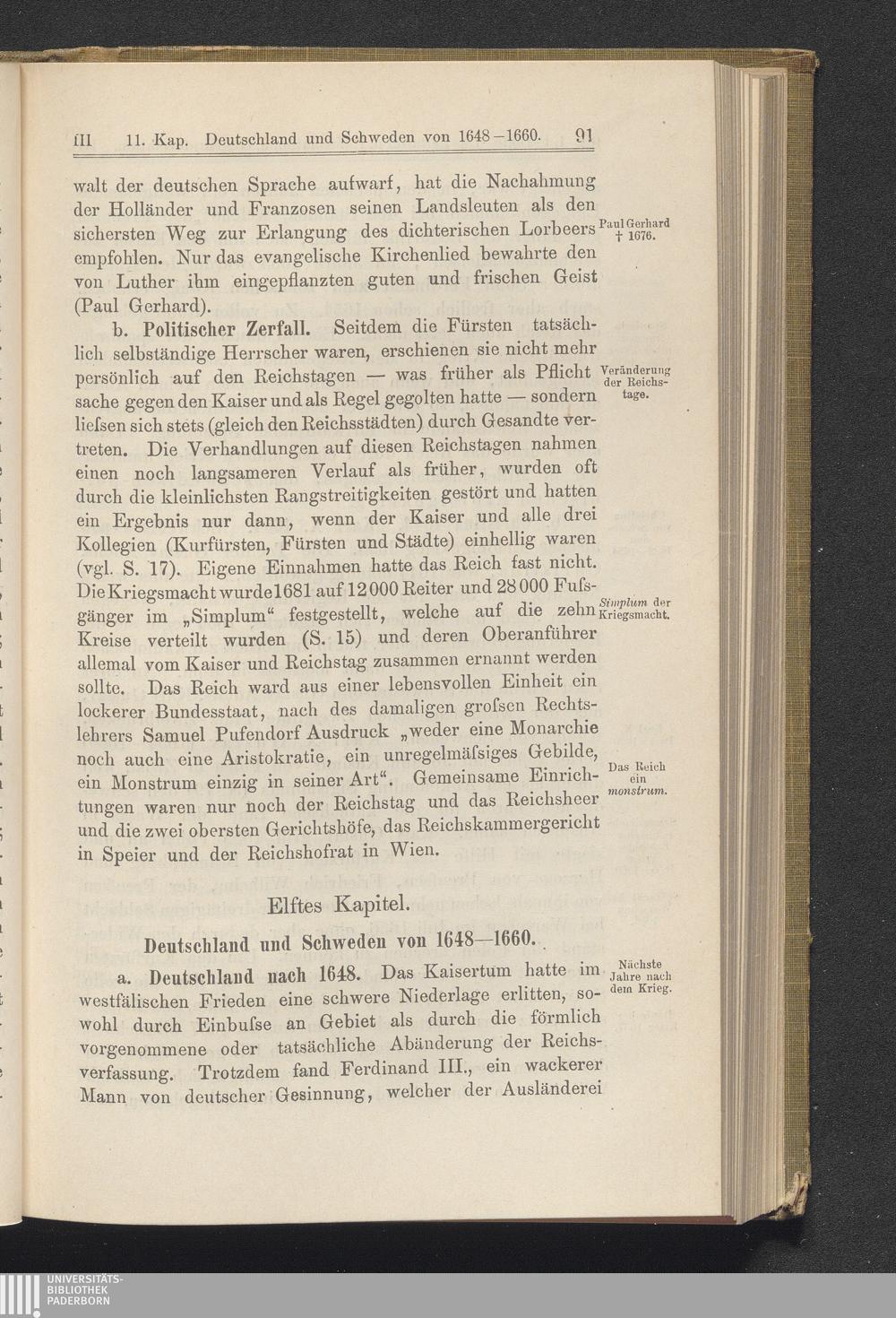 Elftes Kapitel. Deutschland und Schweden von 1648-1660