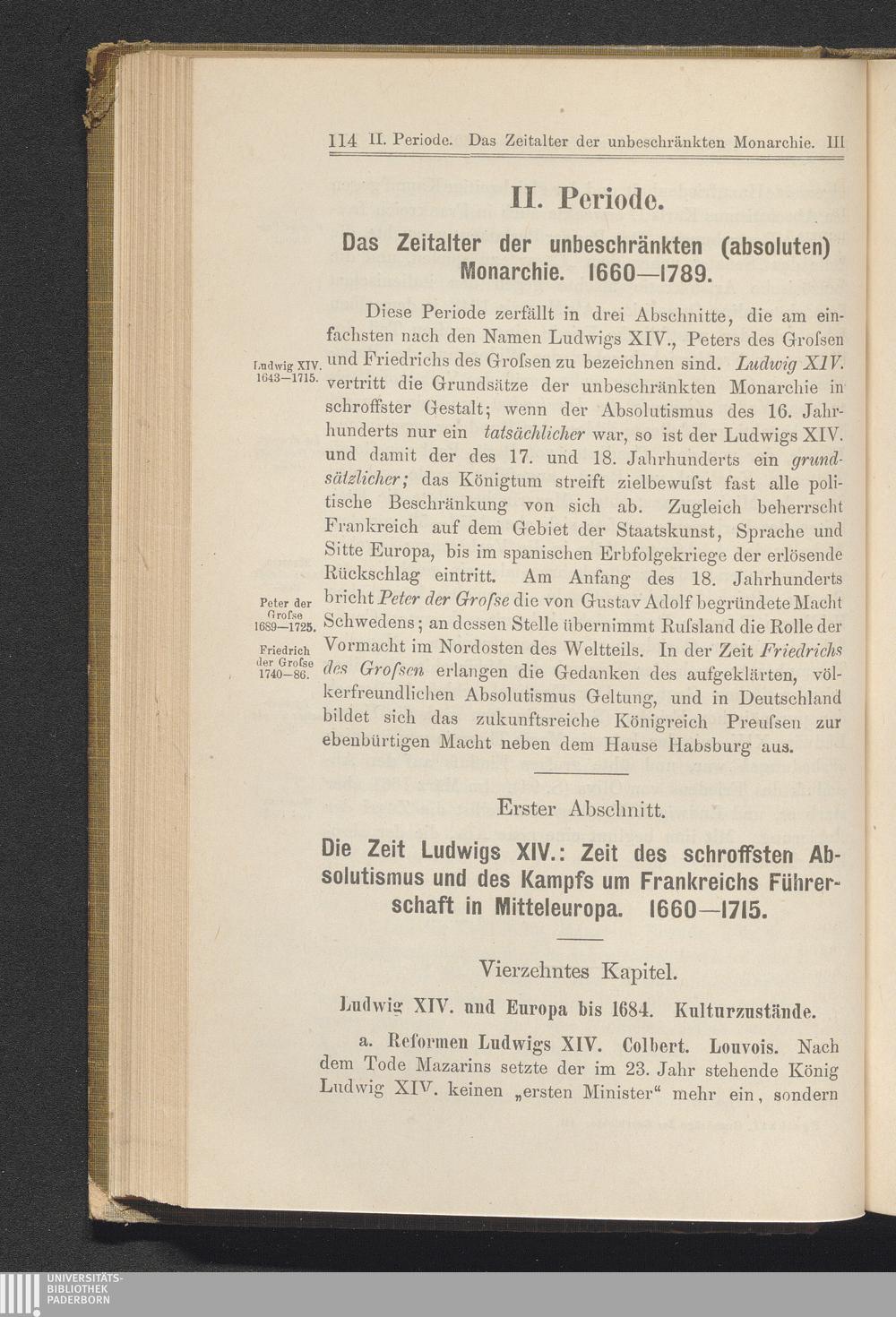 II. Periode. Das Zeitalter der unbeschränkten (absoluten) Monarchie. 1660-1789.