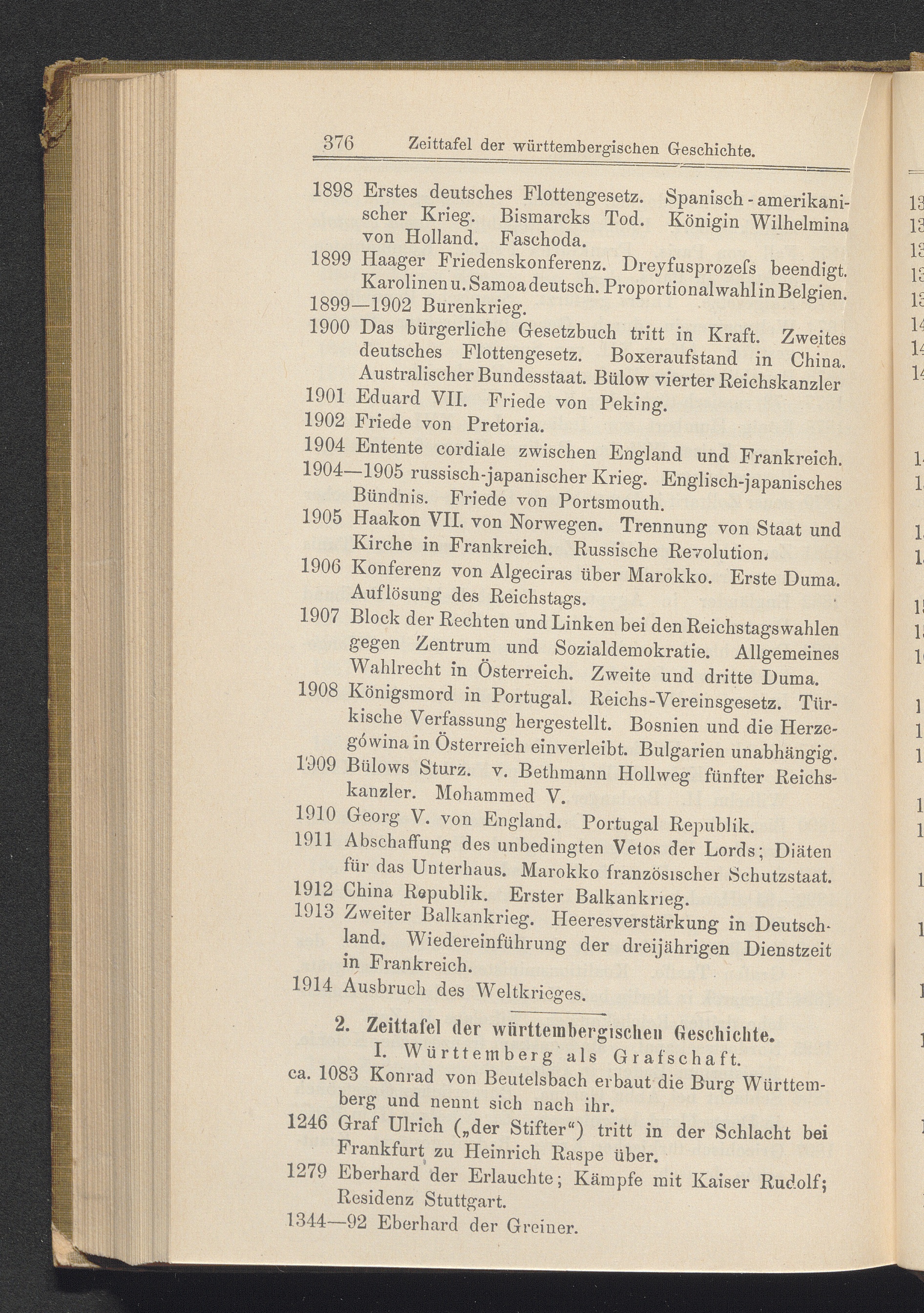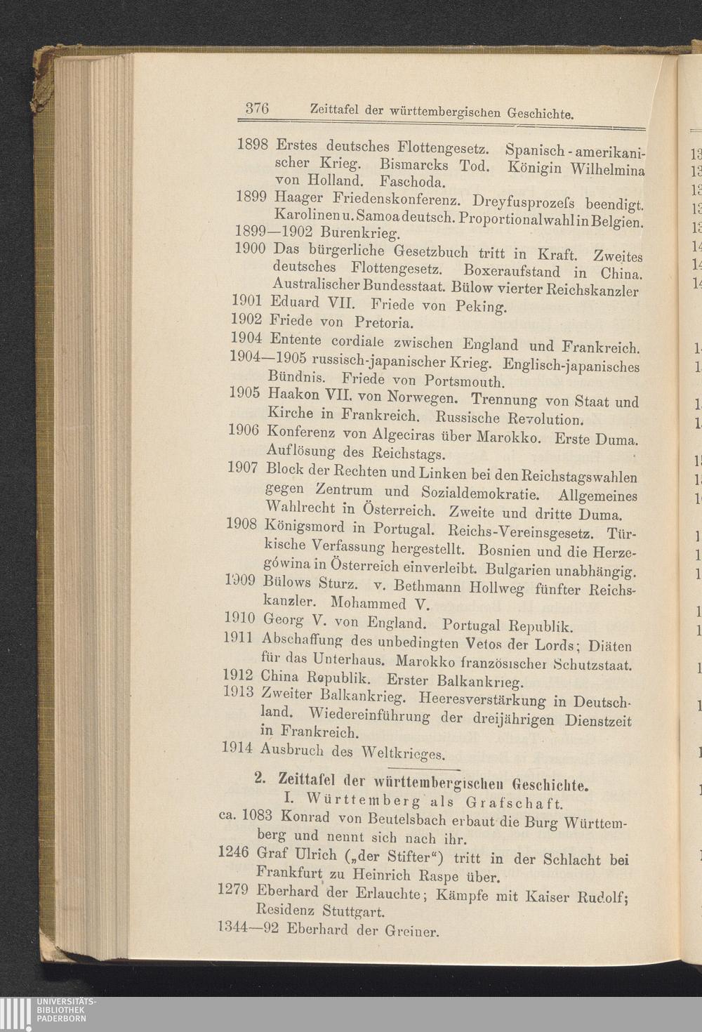 2. Zeittafel der württembergischen Geschichte