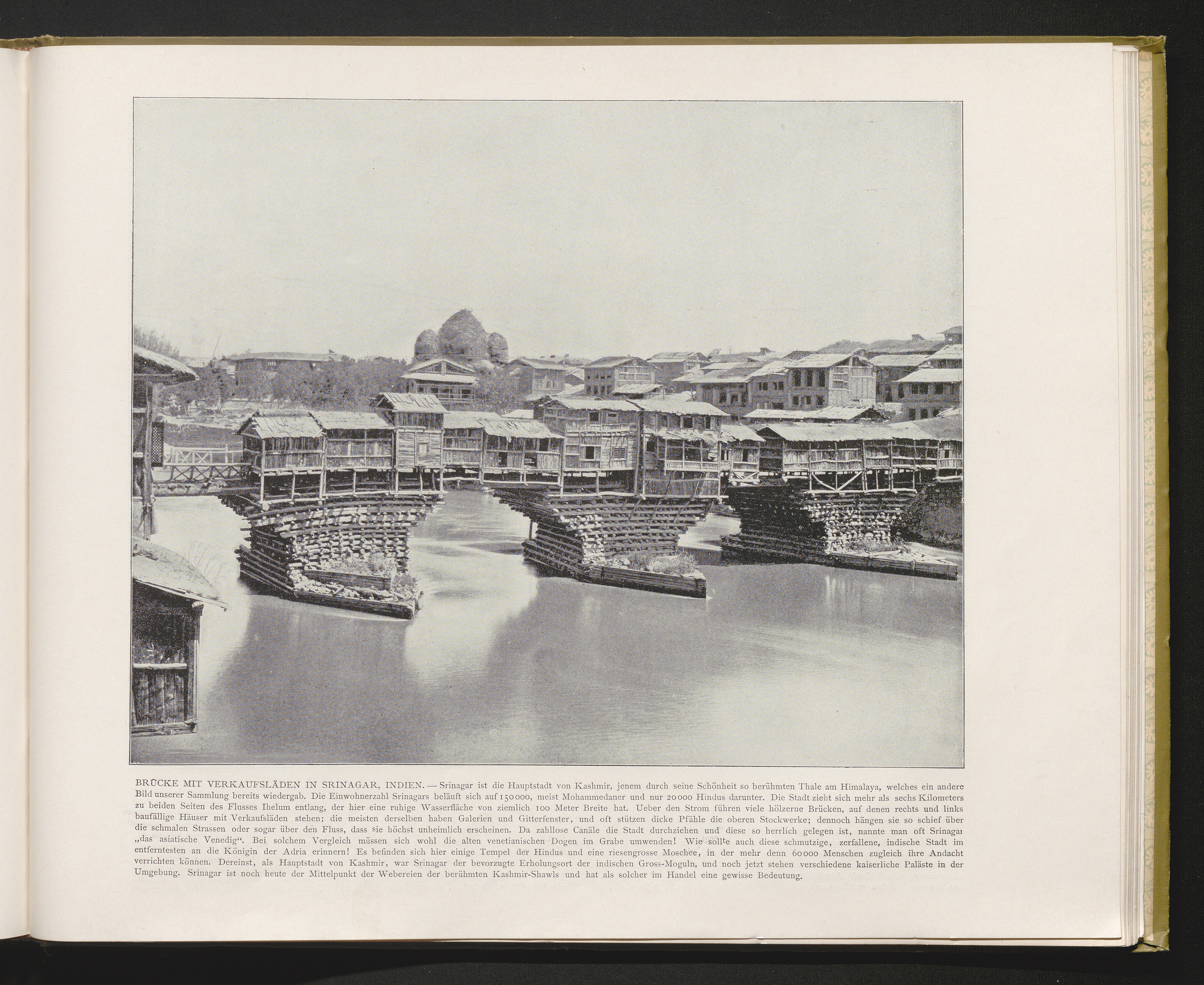 Brücke mit Verkaufsläden in Srinagar, Indien.