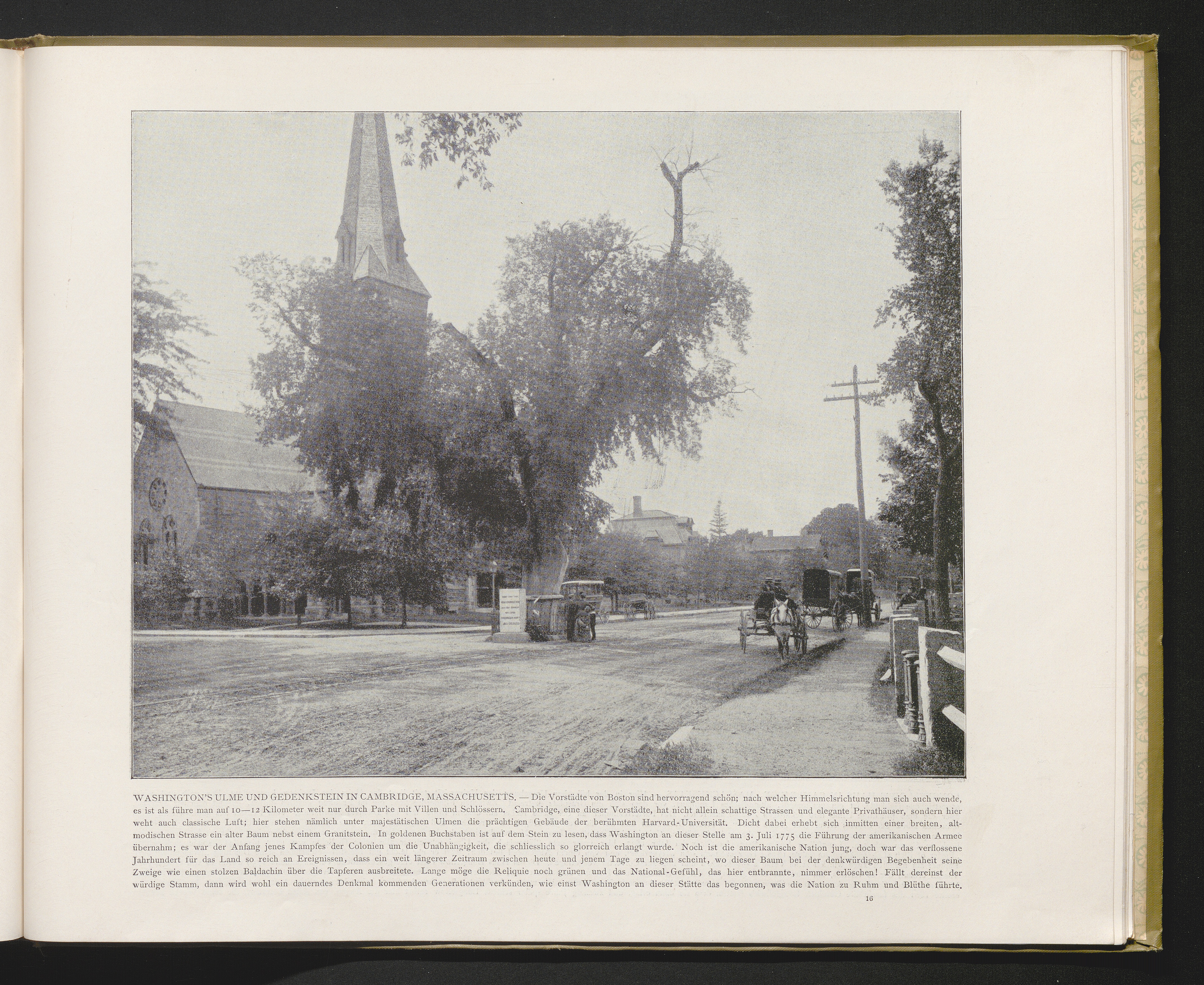 Washington`s Ulme und Gedenkstein in Cambridge, Massachusetts.