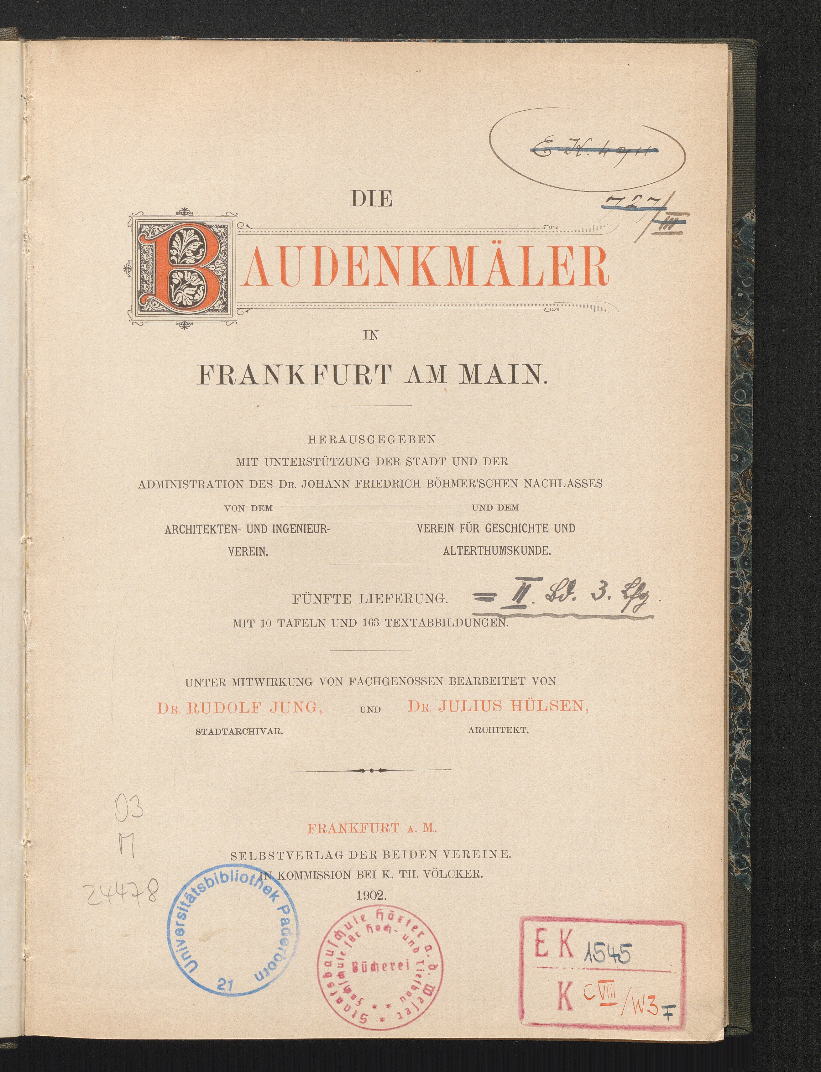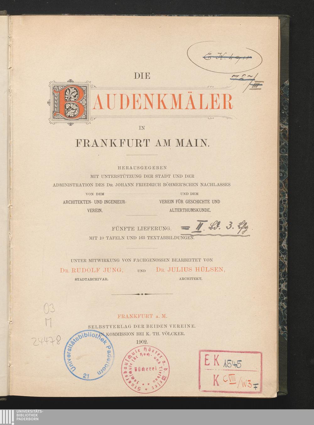 2,3 (1902) Die Baudenkmäler in Frankfurt am Main / hrsg. ... von dem Architekten- und Ingenieurverein.... 5. Lieferung / Weltliche Bauten / unter Mitw. von Fachgenossen bearb. von Rudolf Jung und Julius Hülsen