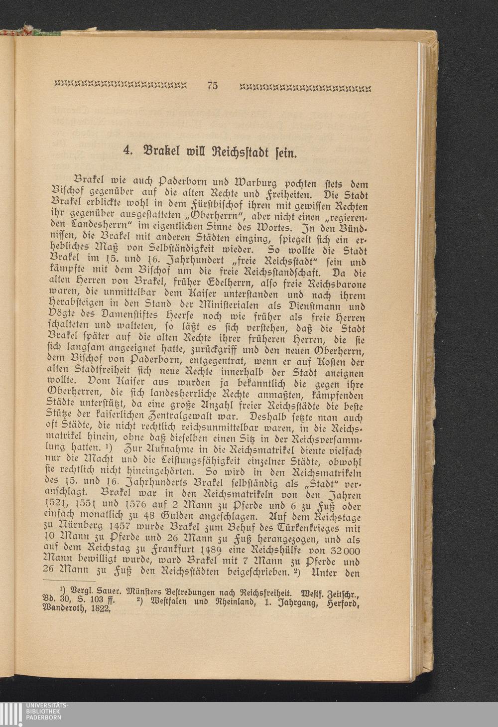 VI. Brakel als Stadt unter der Oberhoheit des Fürstbischofs von Paderborn.