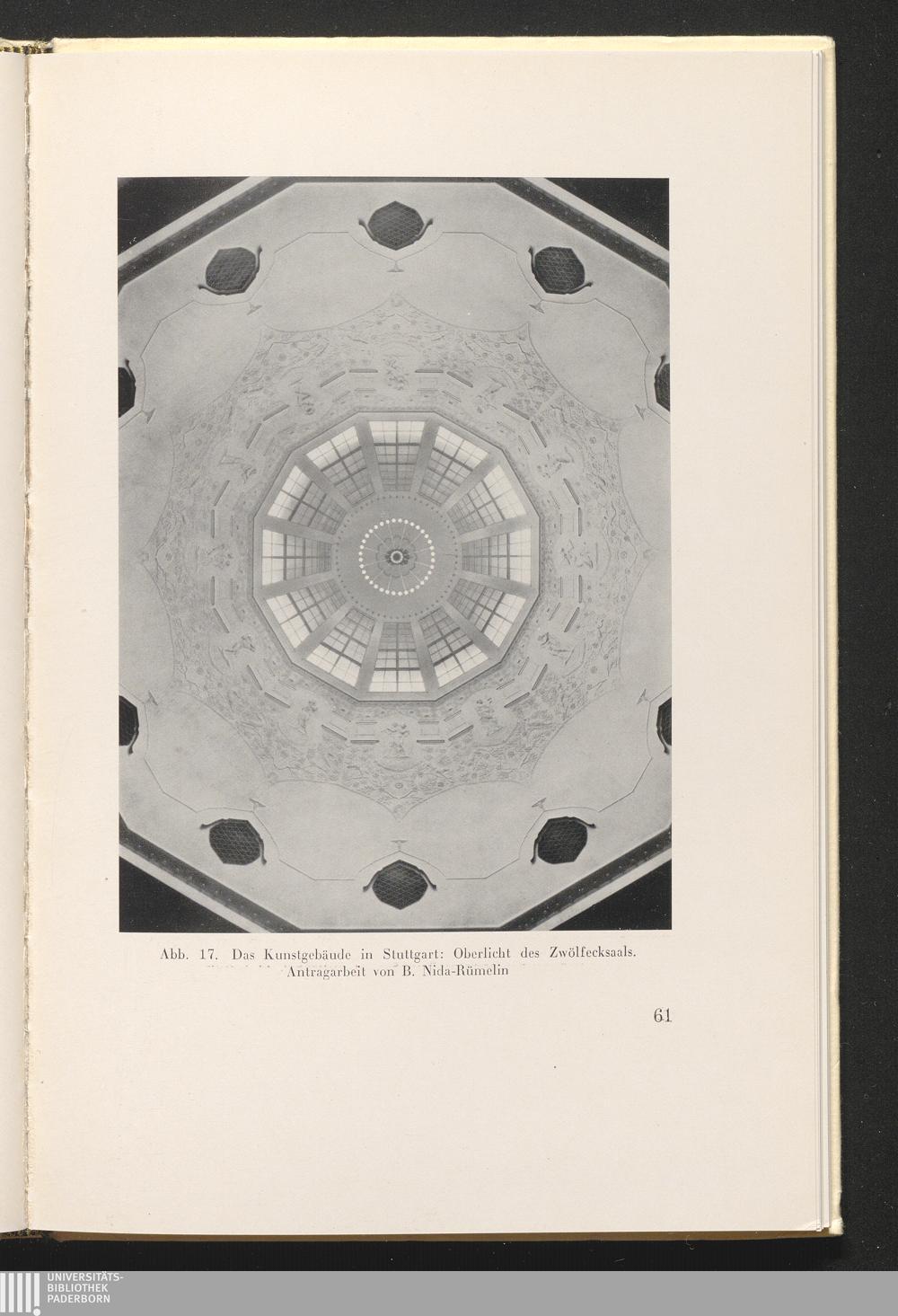 Abb. 17. Das Kunstgebäude in Stuttgart: Oberlicht des Zwölfecksaals. Antragarbeit[...]