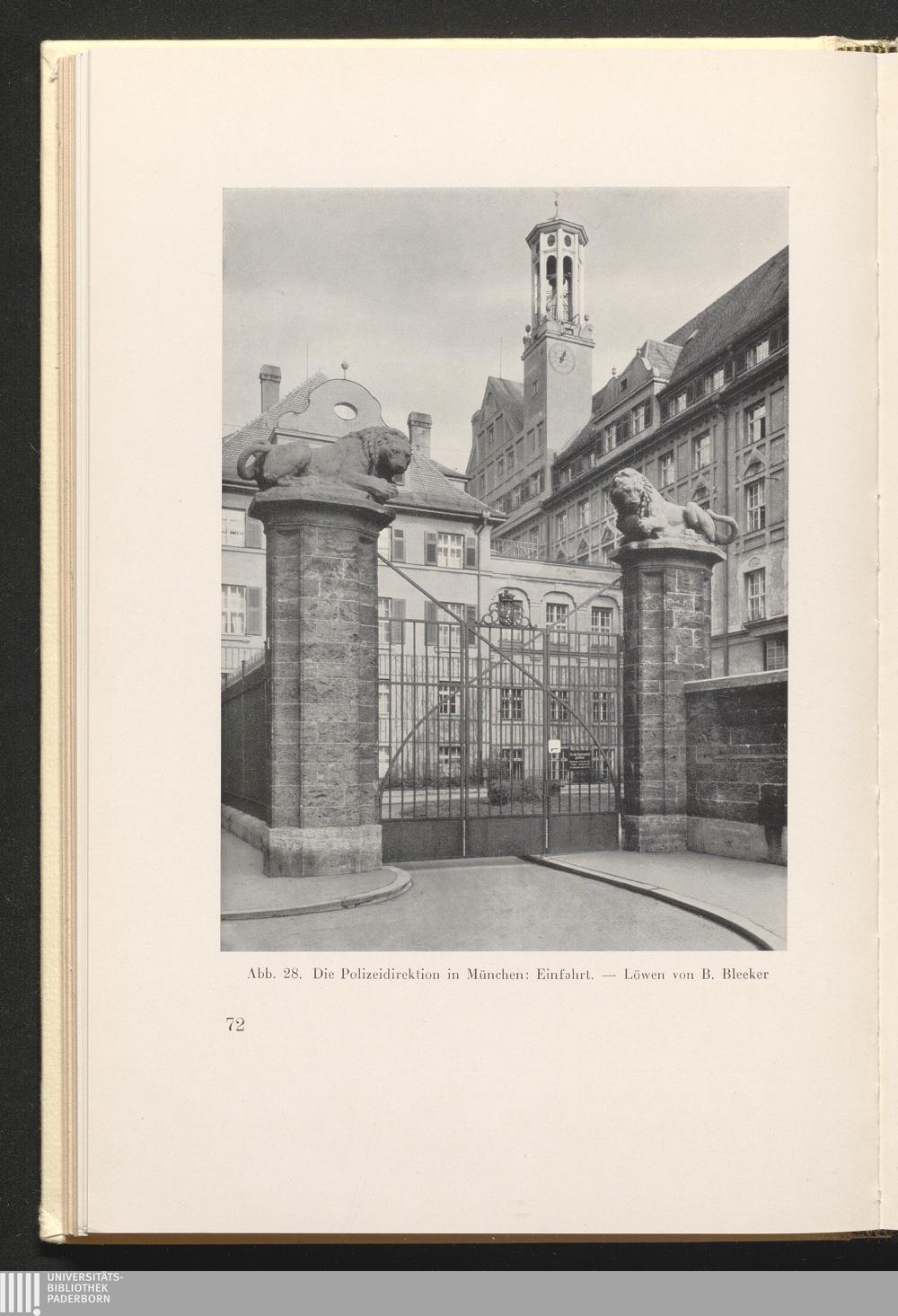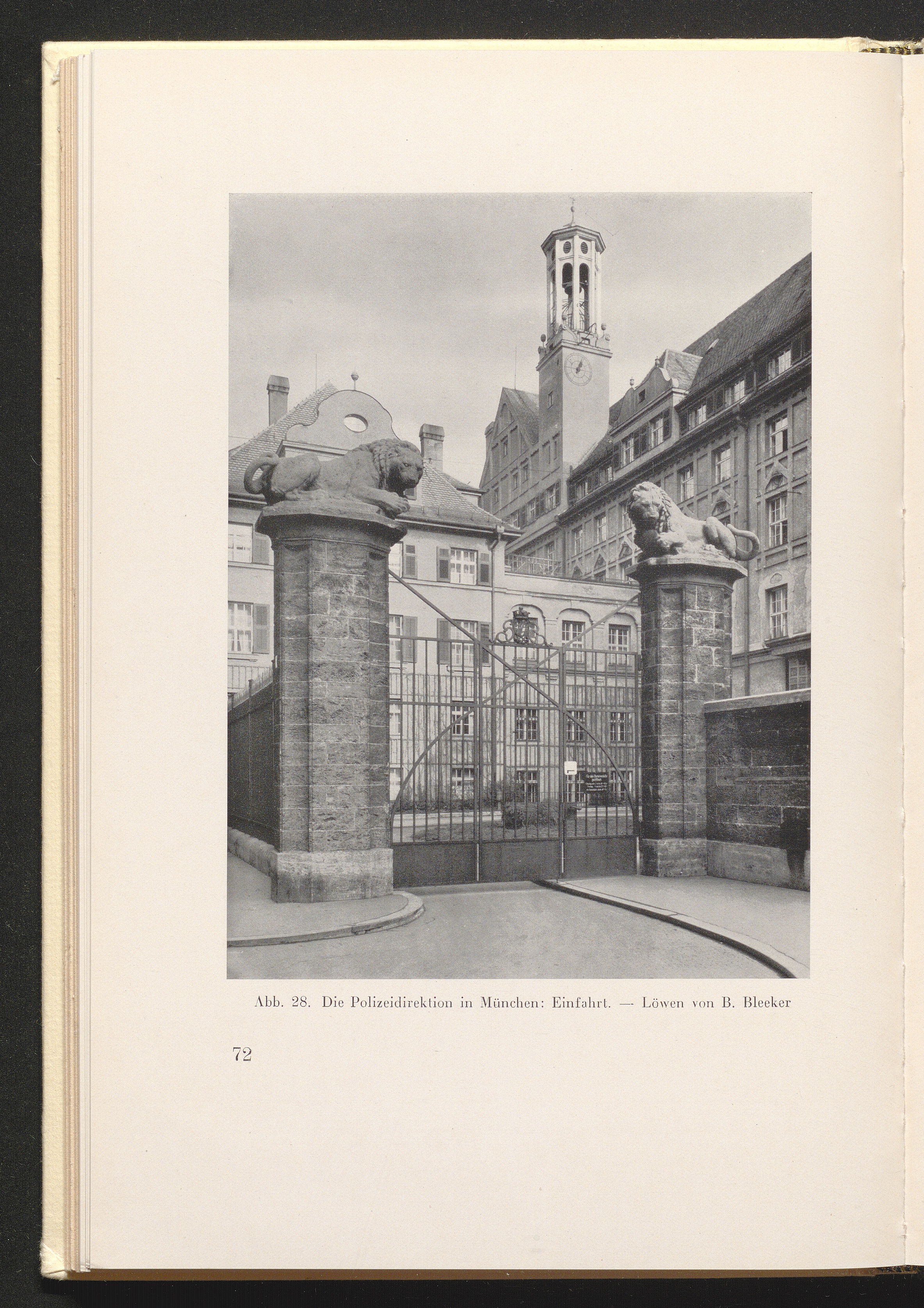 Abb. 28. Die Polizeidirektion in München: Einfahrt. - Löwen von B. Bleeker