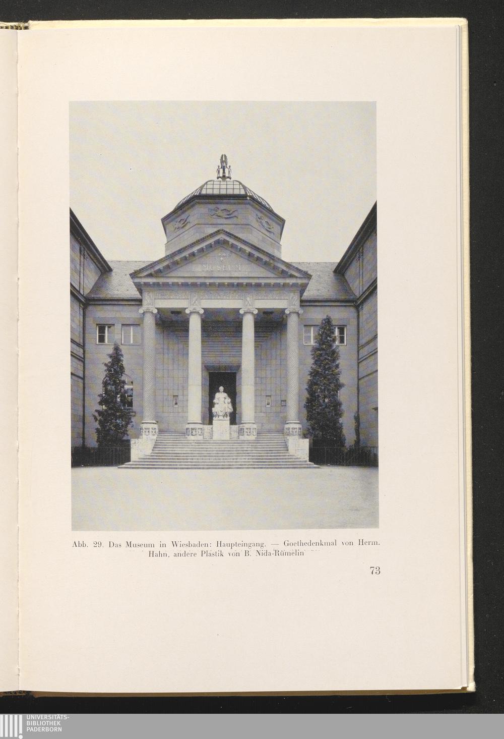 Abb. 29. Das Museum in Wiesbaden: Haupteingang. - Goethedenkmal von Herm. Hahn, andere[...]