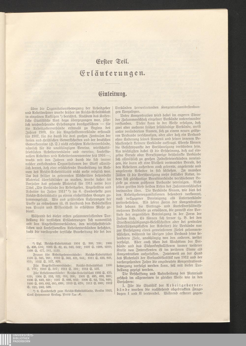Die Verbände der Arbeitgeber, Angestellten und Arbeiter im Jahre 1912 / bearb. im Kaiserl. Statist. Amte, Abt. für Arbeiterstatistik