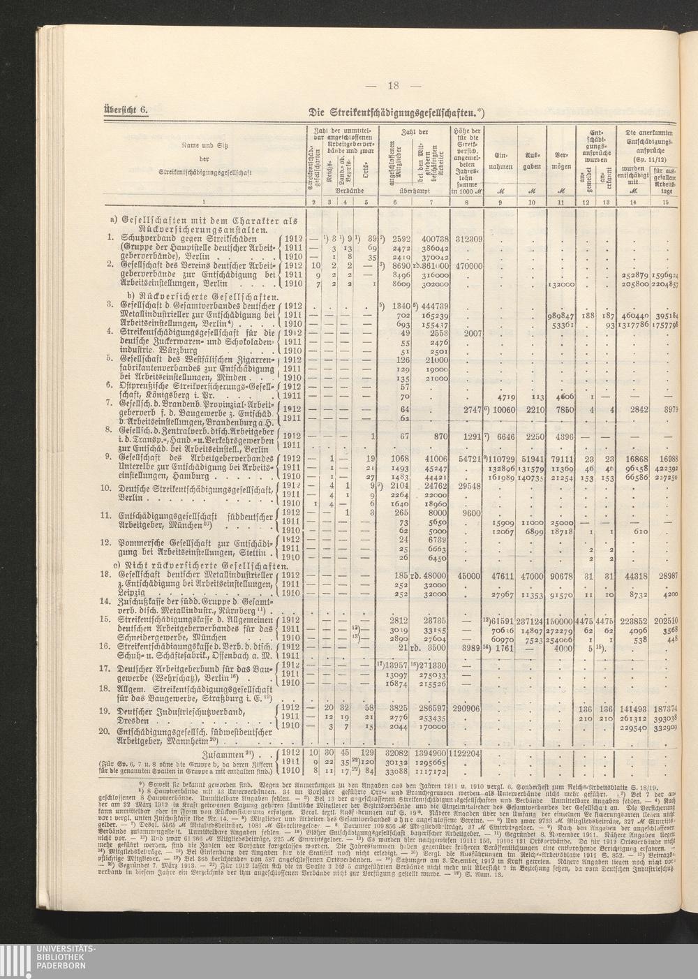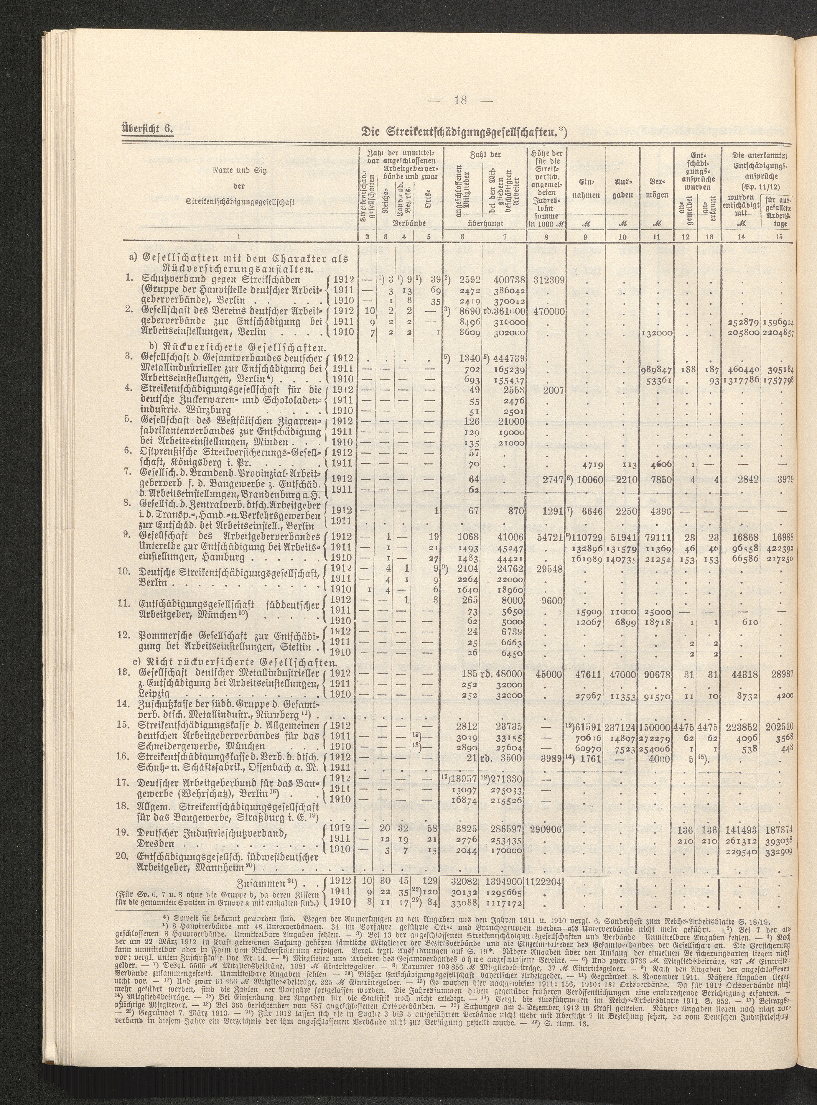 Übersicht 6. Die Streikentschädigungsgesellschaften.