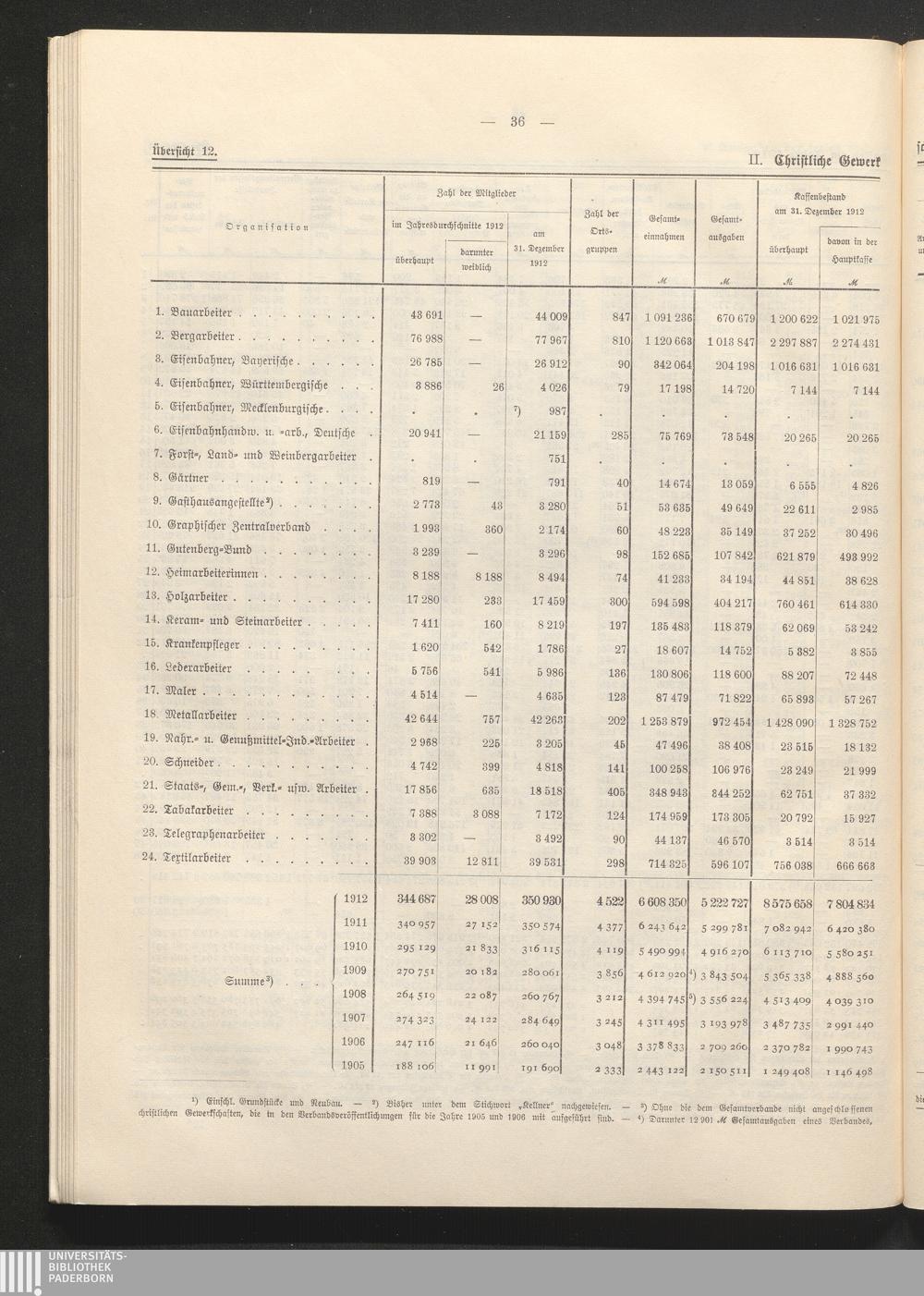 Die Verbände der Arbeitgeber, Angestellten und Arbeiter im Jahre 1912 / bearb. im Kaiserl. Statist. Amte, Abt. für Arbeiterstatistik