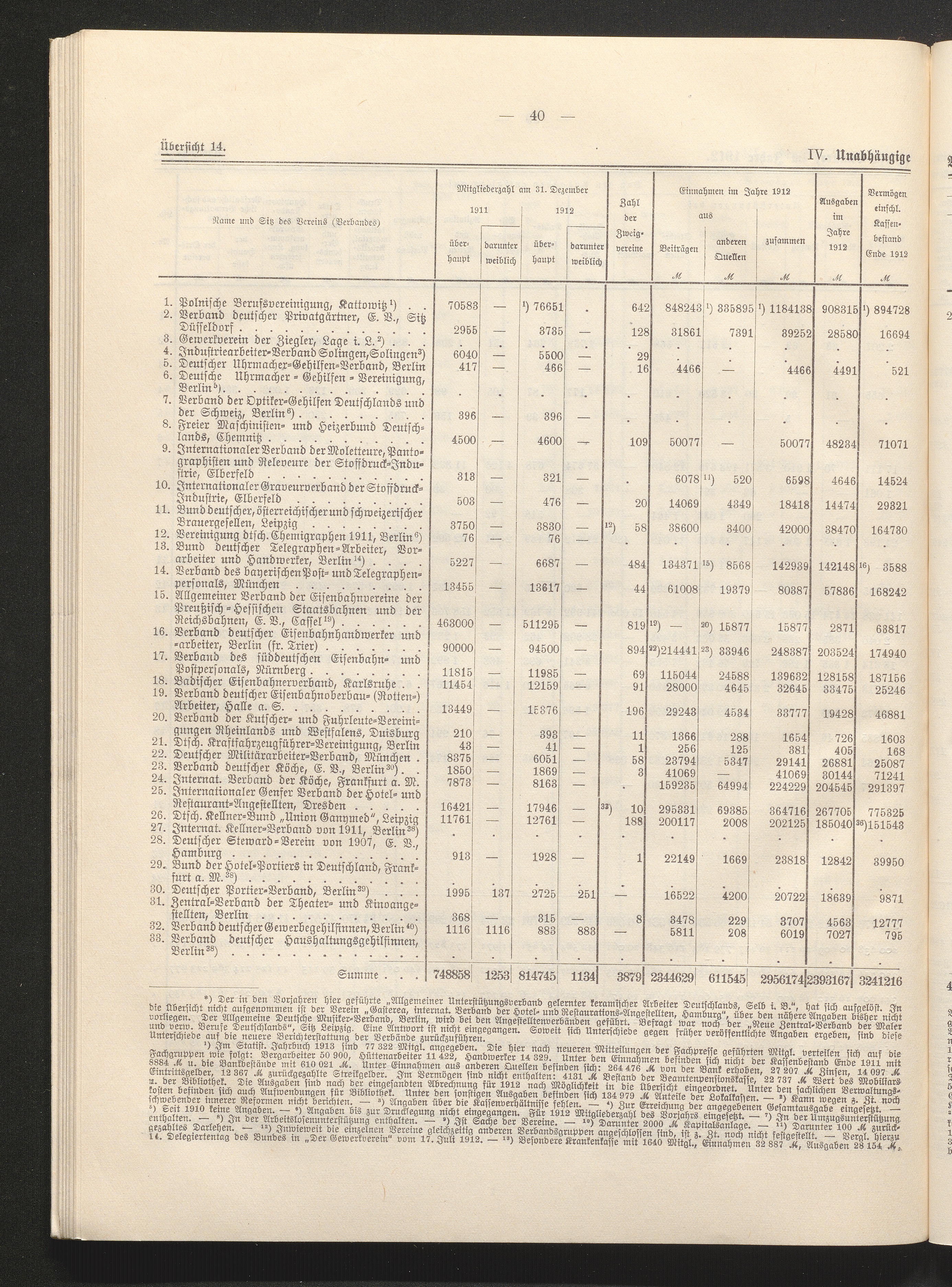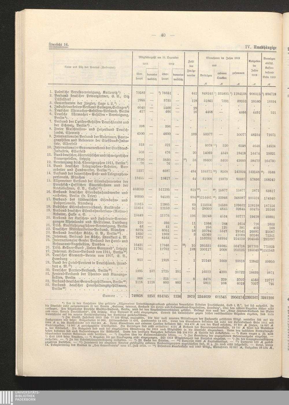 Die Verbände der Arbeitgeber, Angestellten und Arbeiter im Jahre 1912 / bearb. im Kaiserl. Statist. Amte, Abt. für Arbeiterstatistik