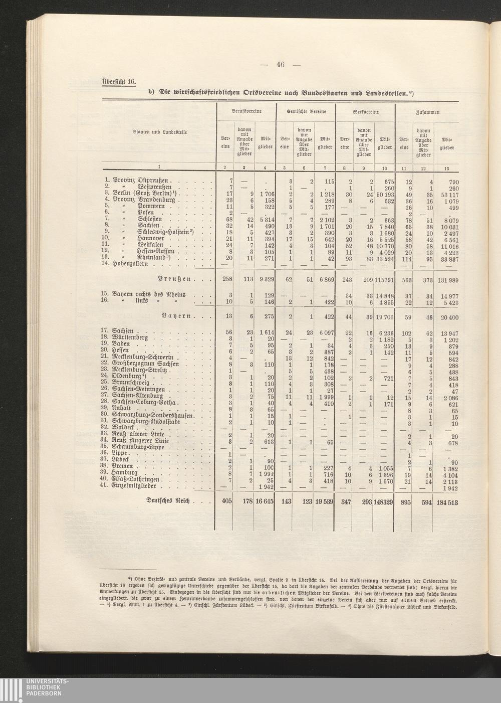 Übersicht 16. b) Die wirtschaftsfriedlichen Ortsvereine nach Bundesstaaten und L[...]