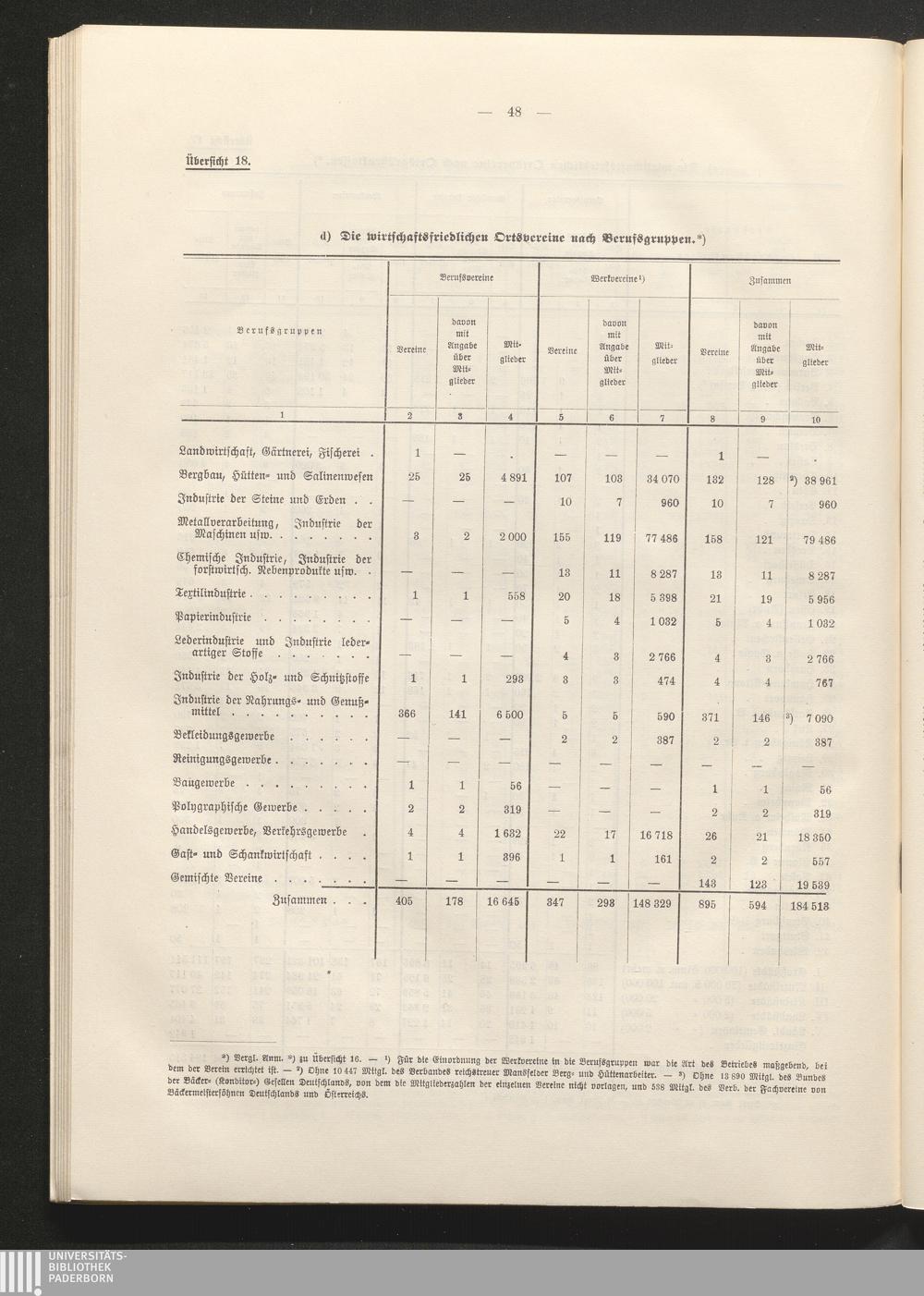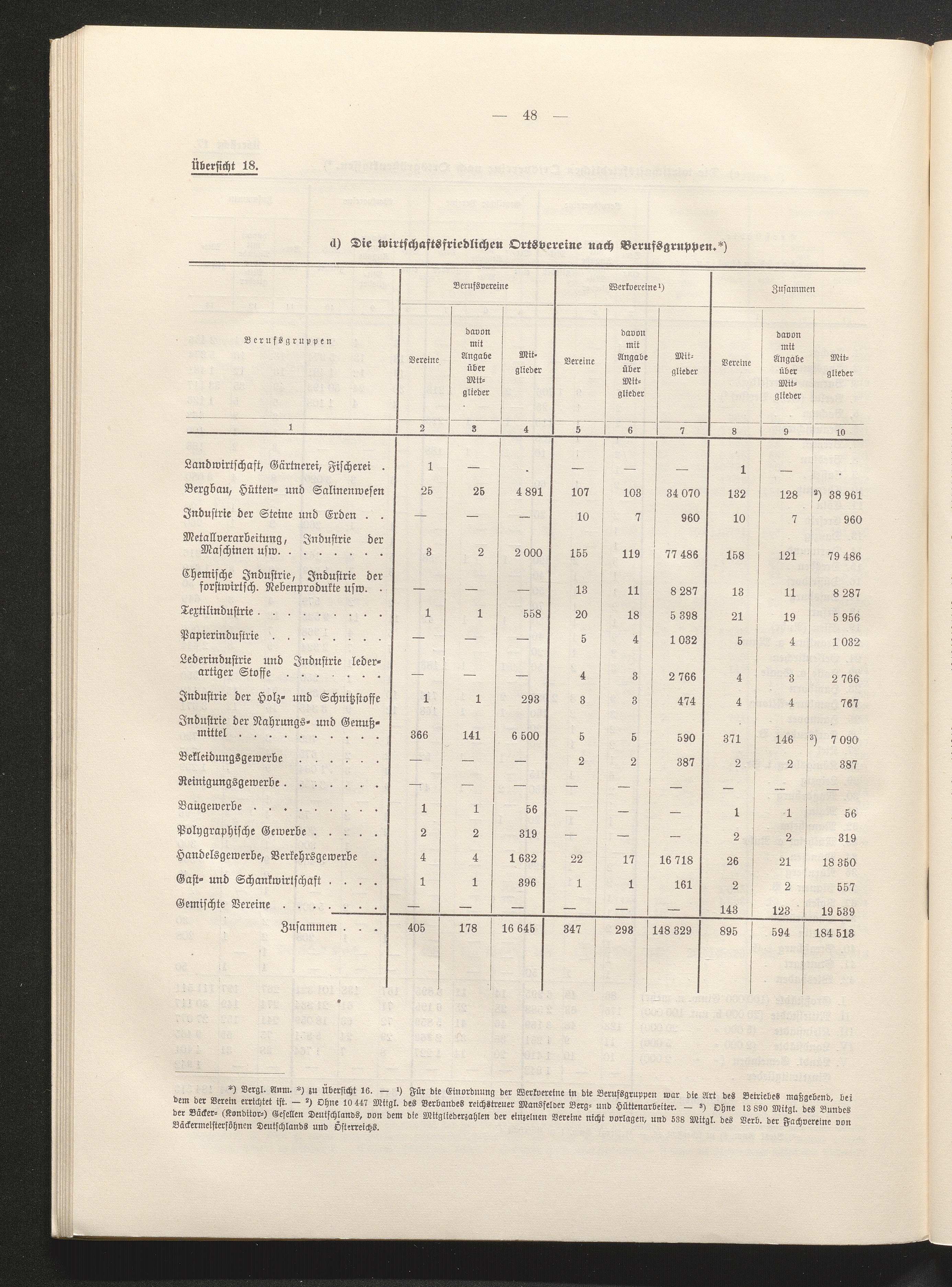 Übersicht 18. Die wirtschaftsfriedlichen Ortsvereine nach Berufsgruppen.