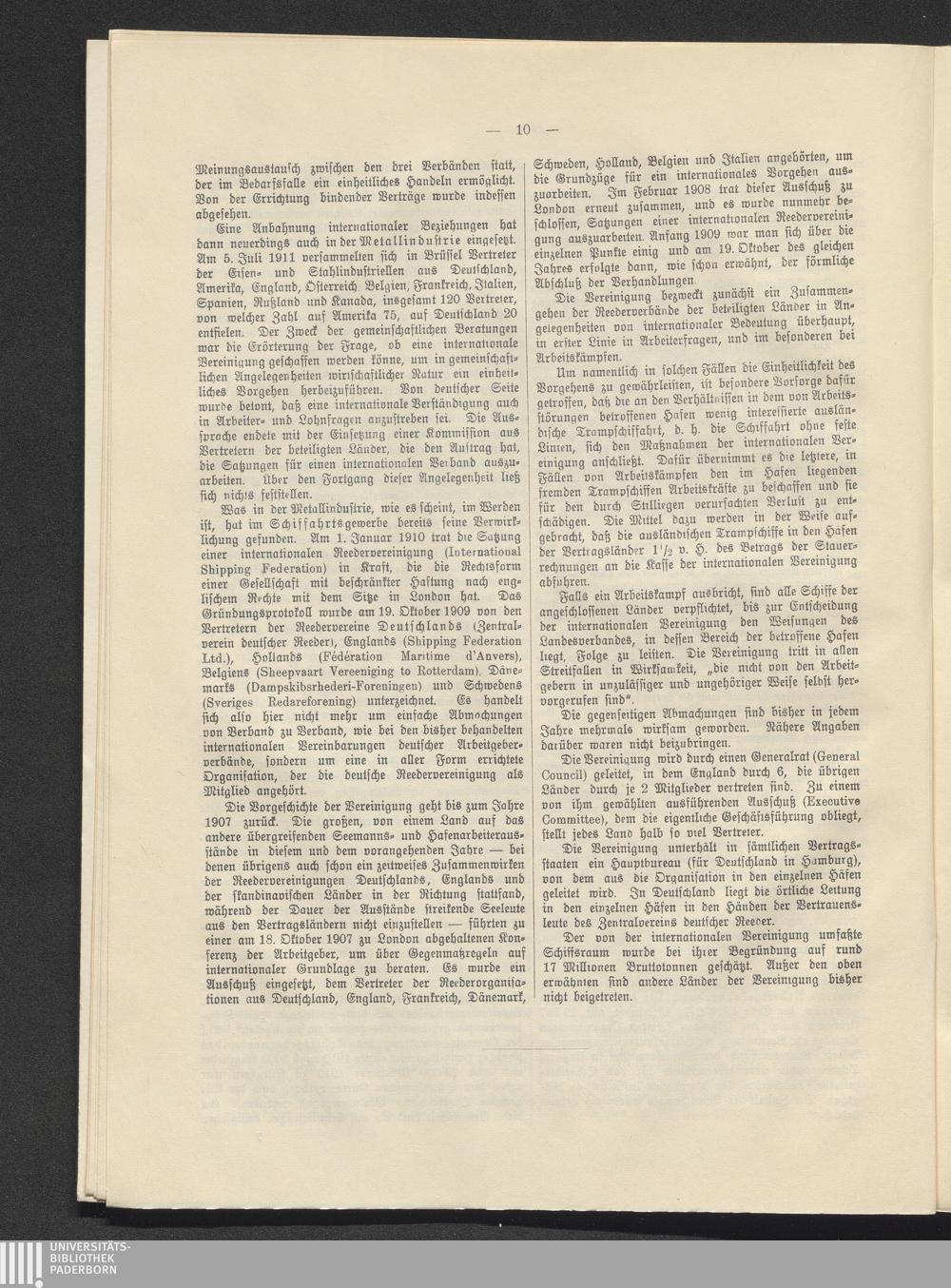 Die internationalen Beziehungen der deutschen Arbeitgeber-, Angestellten- und Arbeiterverbände / bearb. im Kaiserl. Statist. Amte, Abt. für Arbeiterstatistik