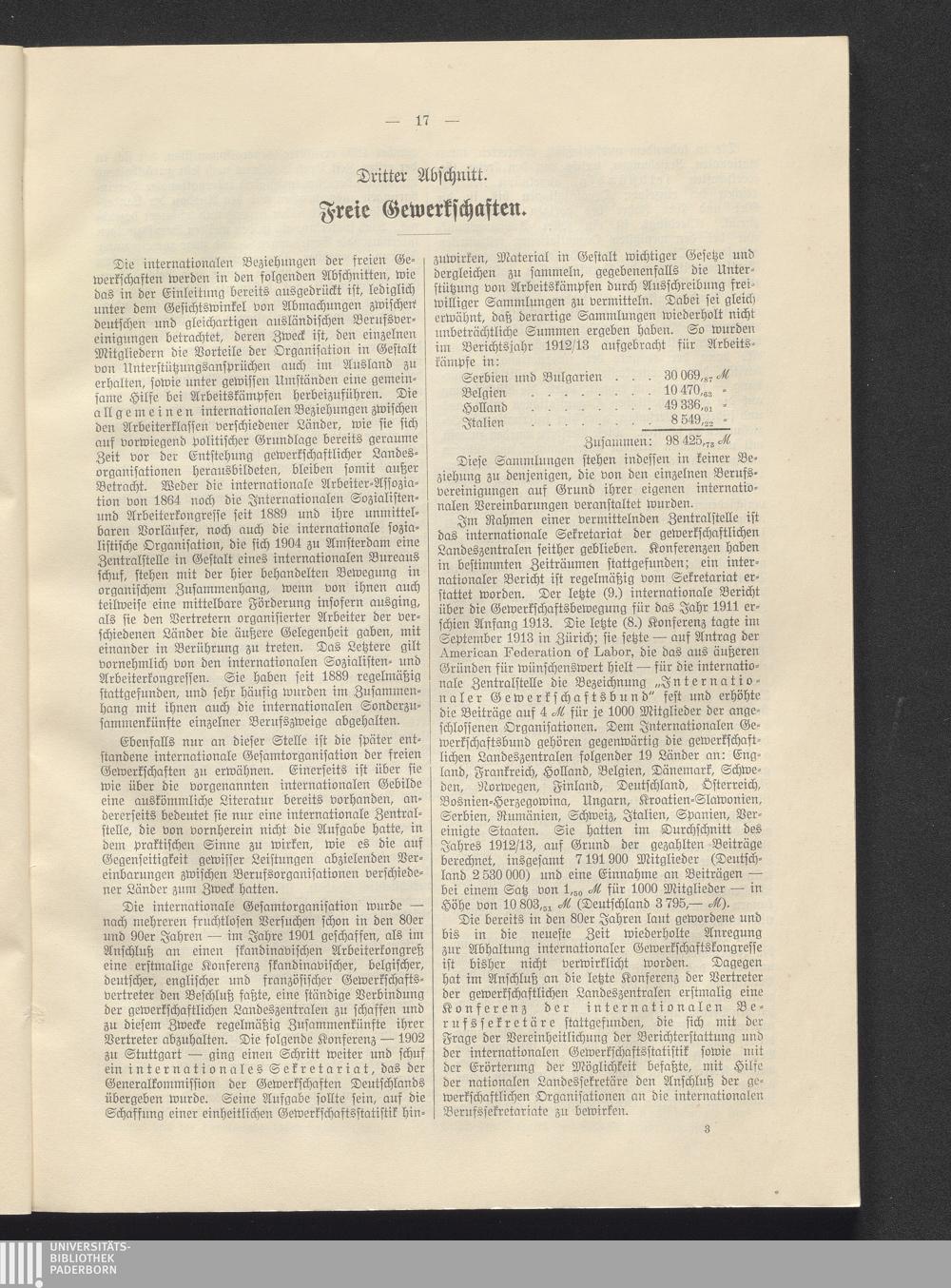 Dritter Abschnitt: Freie Gewerkschaften.