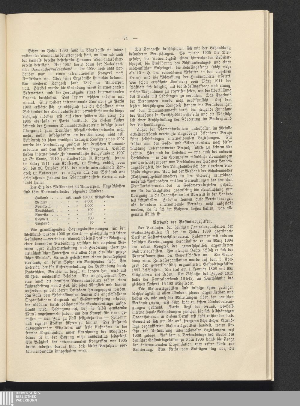 Die internationalen Beziehungen der deutschen Arbeitgeber-, Angestellten- und Arbeiterverbände / bearb. im Kaiserl. Statist. Amte, Abt. für Arbeiterstatistik