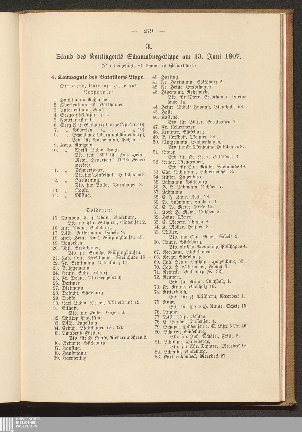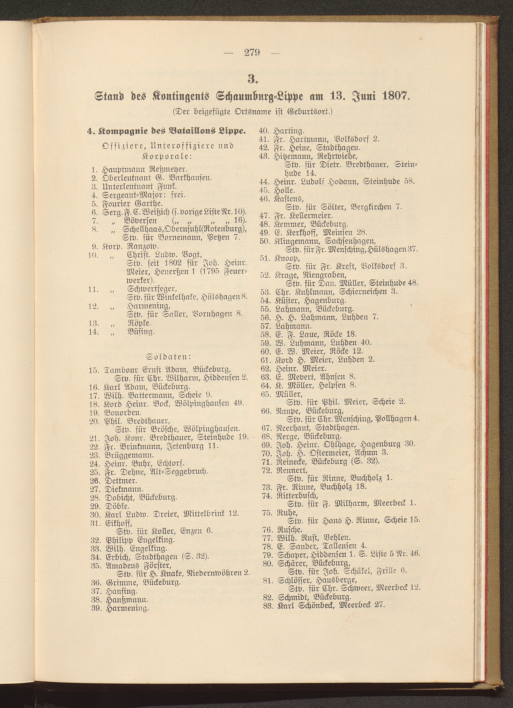 3. Stand des Kontingents Schaumburg-Lippe am 13. Juni 1807.