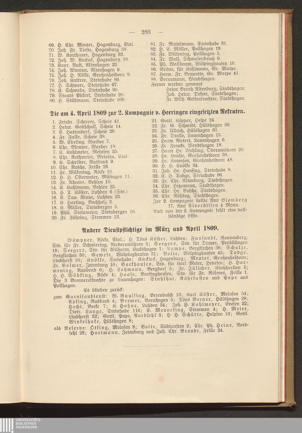 Andere Dienstpflichtige 1809.