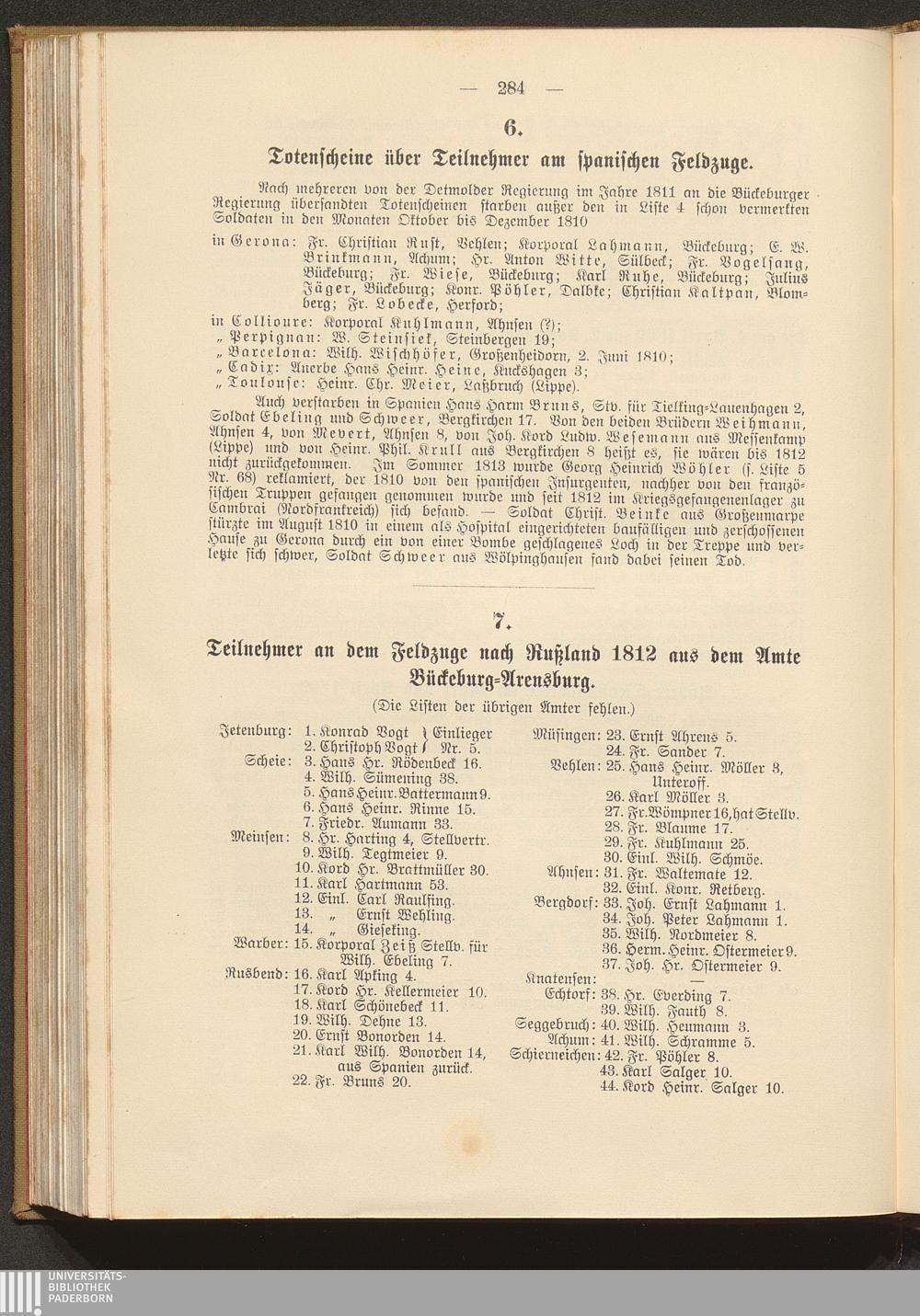 7. Teilnehmer an dem Feldzuge nach Rußland 1812 aus dem Amte Bückeburg-Arensburg[...]
