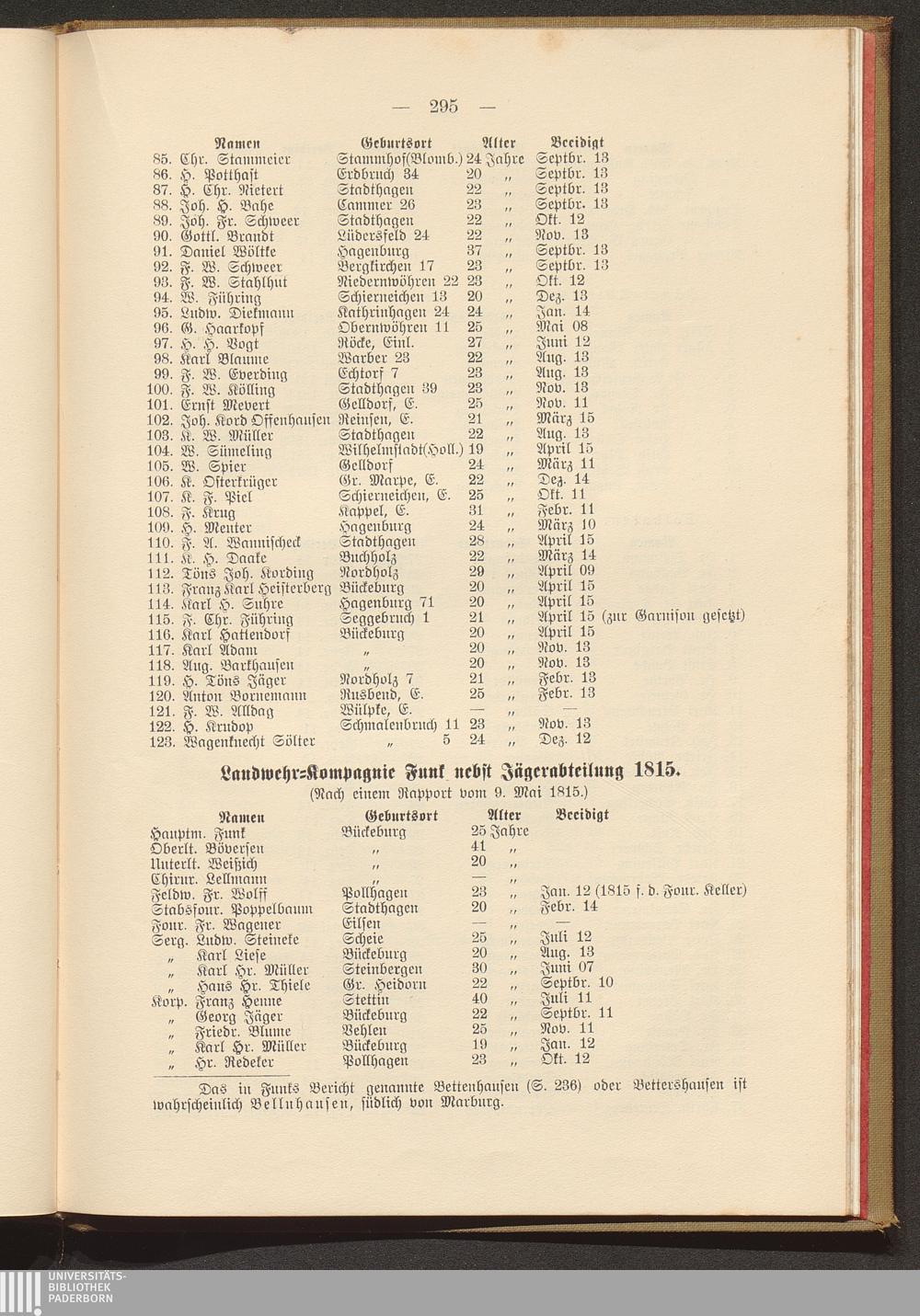 Landwehr-Kompagnie Funk nebst Jäger-Abteilung 1815.