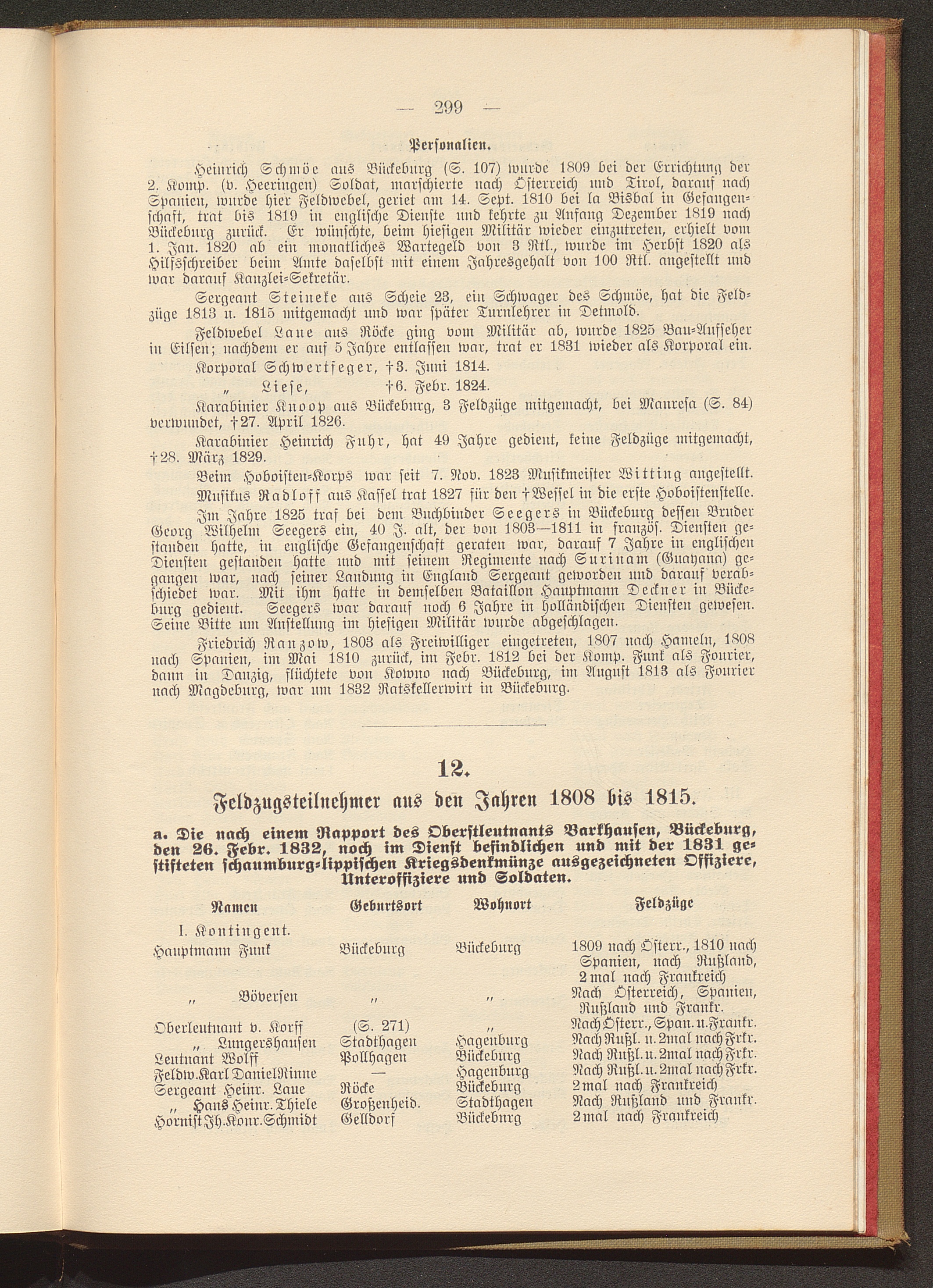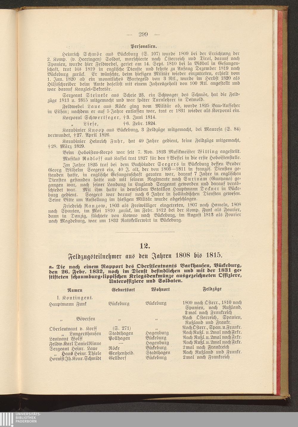 Feldzugsteilnehmer aus den Jahren 1808 bis 1815.
