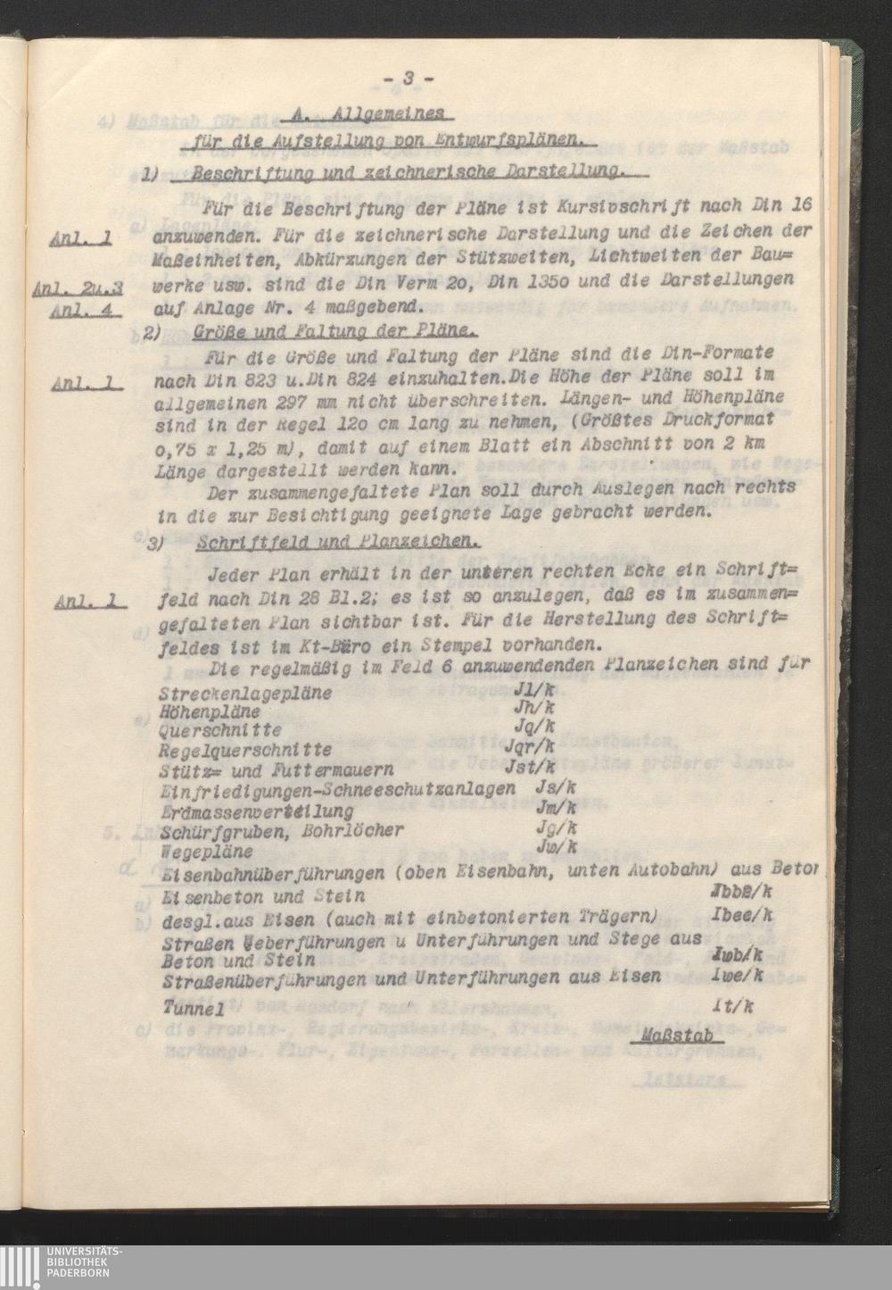 A. Allgemeines für die Aufstellung von Entwurfsplänen.