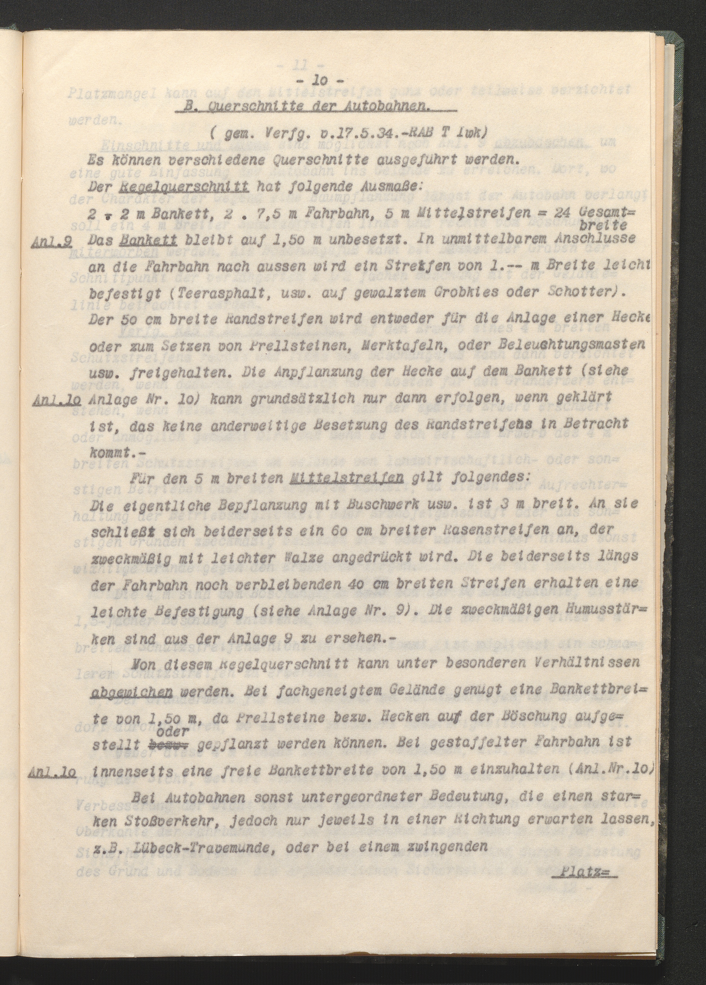 B. Querschnitte der Autobahnen u. Nebenanlagen, wie Gräben, Schutzzäune für Wild,[...]