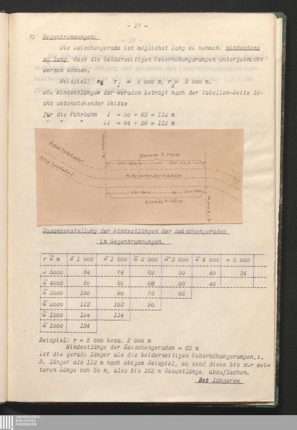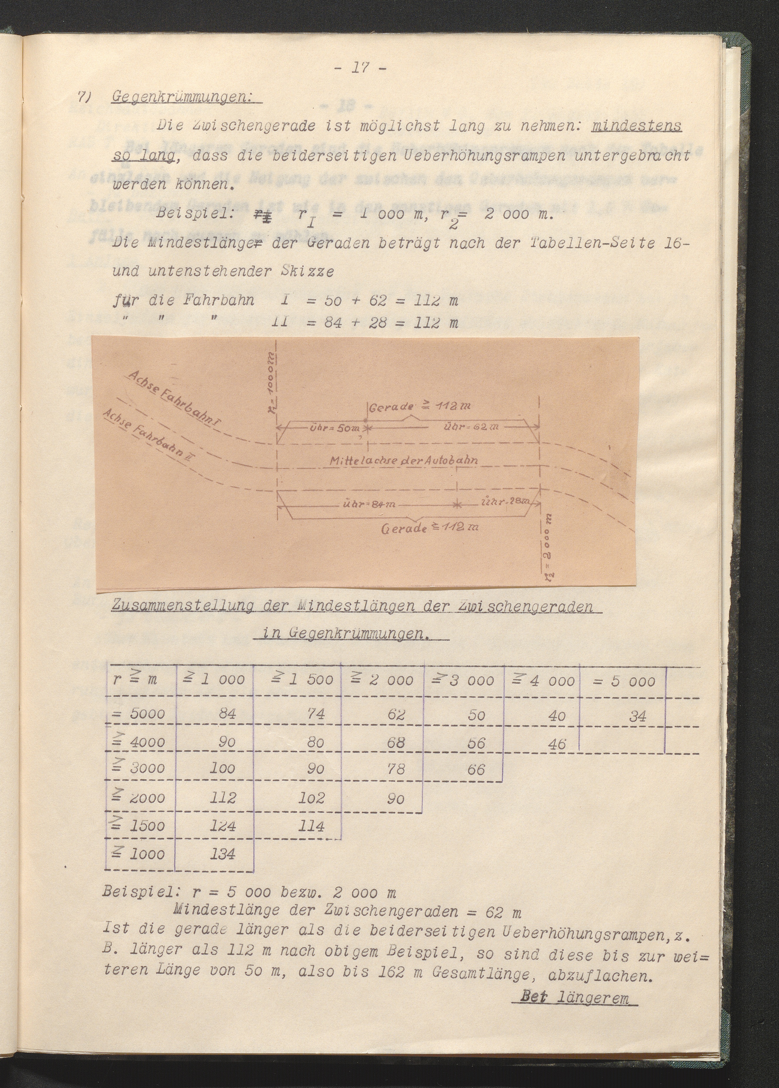 C. Querneigung in der Geraden u. in Krümmungen u. Ausgestaltung der Krümmungen.