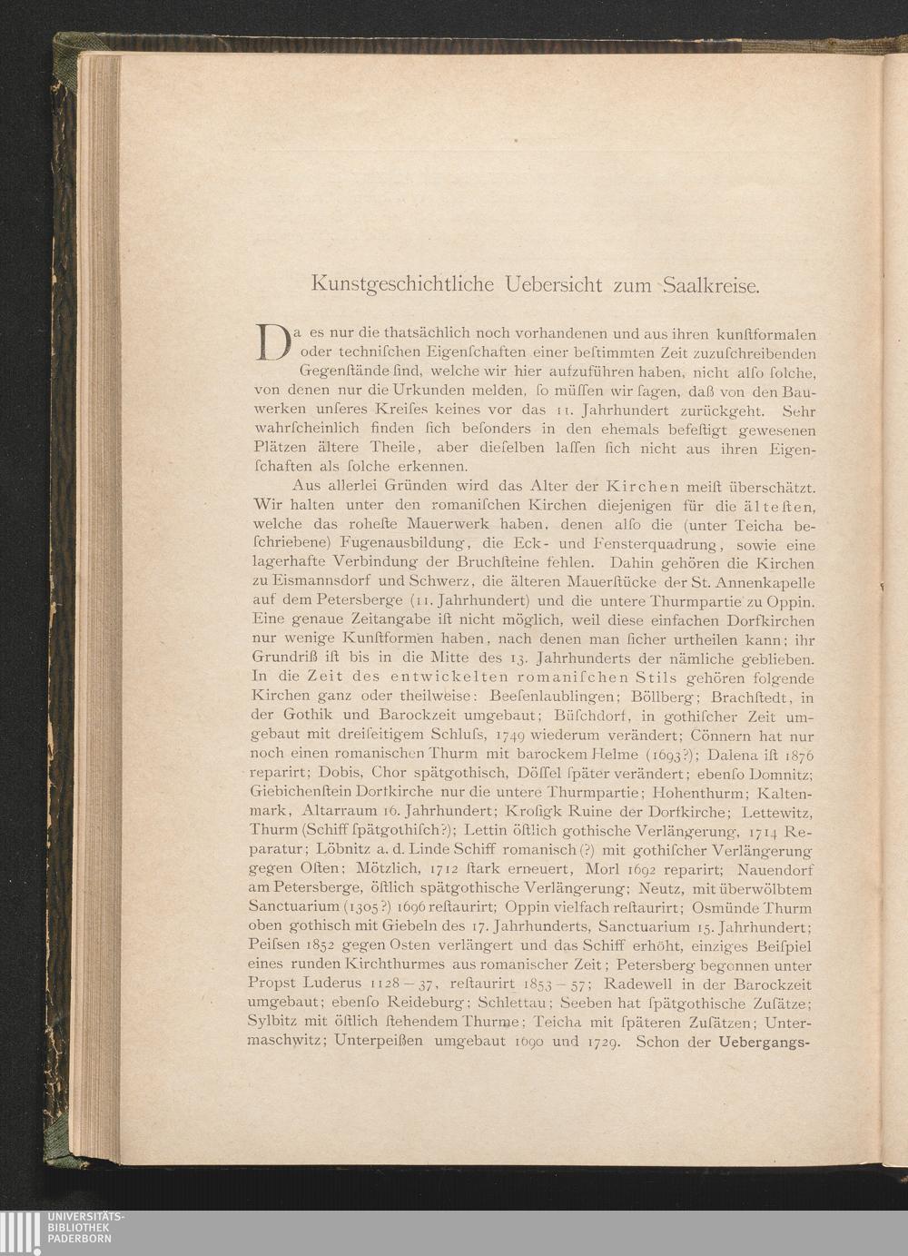 Kunstgeschichtliche Uebersicht zum Saalkreise