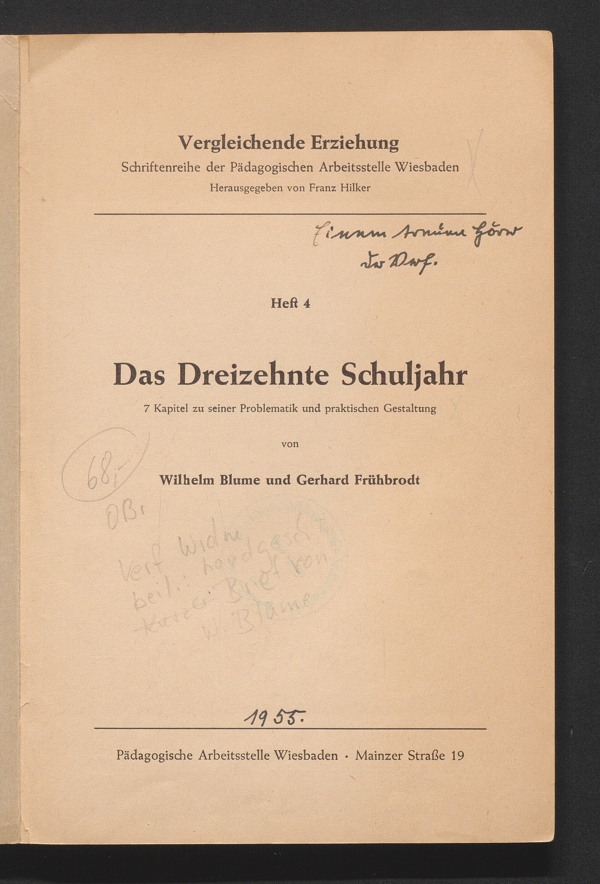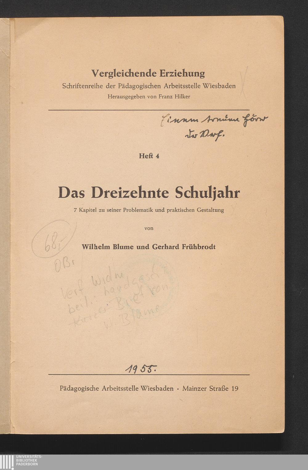 Das dreizehnte Schuljahr : 7 Kapitel zu seiner Problematik und praktischen Gestaltung / von Wilhelm Blume und Gerhard Frühbrodt
