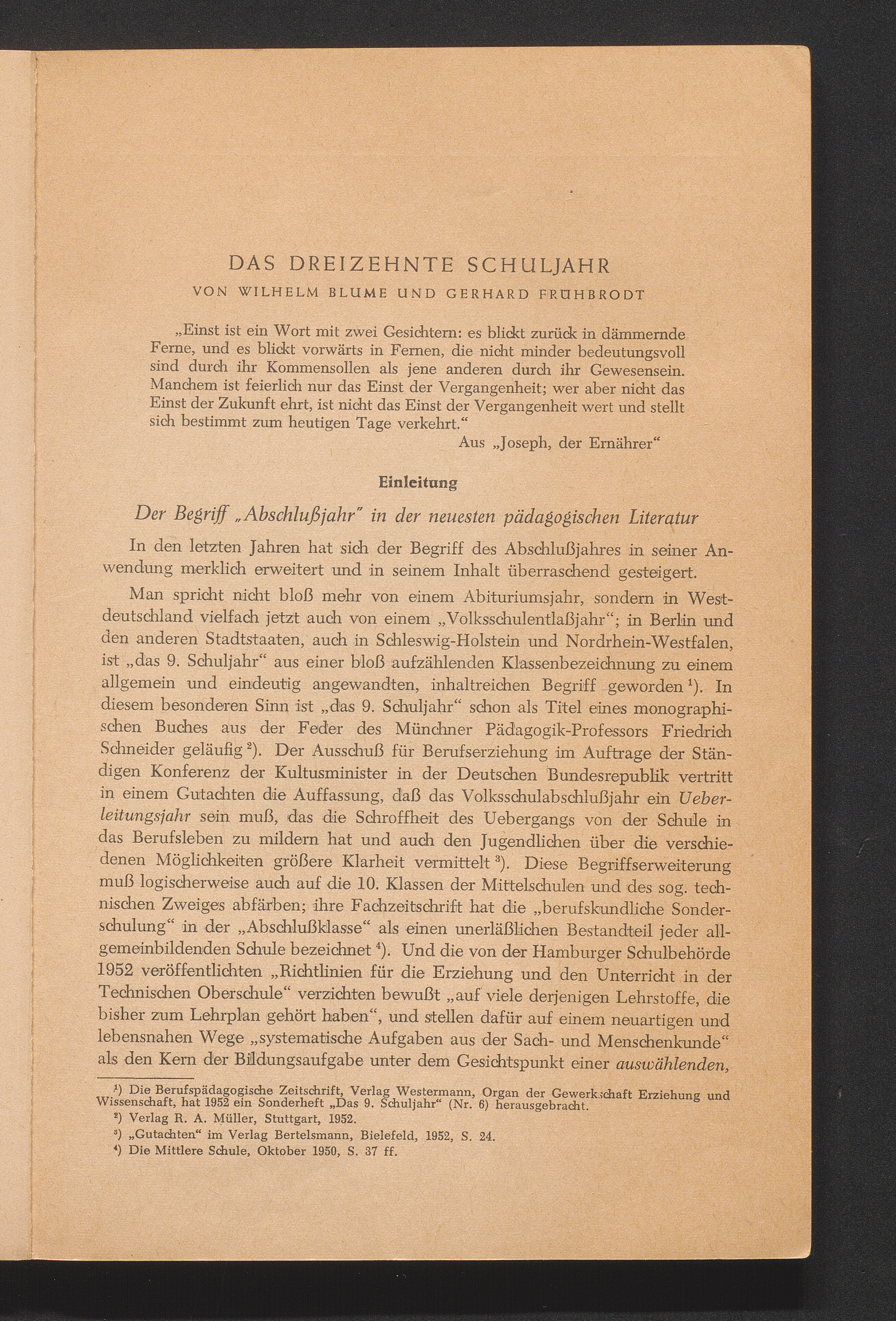 Das dreizehnte Schuljahr : 7 Kapitel zu seiner Problematik und praktischen Gestaltung / von Wilhelm Blume und Gerhard Frühbrodt