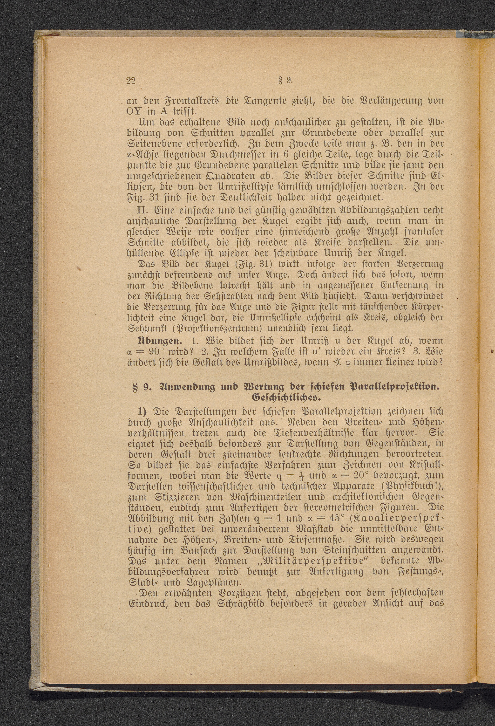 § 9. Anwendung und Wertung der schiefen Parallelprojektion.