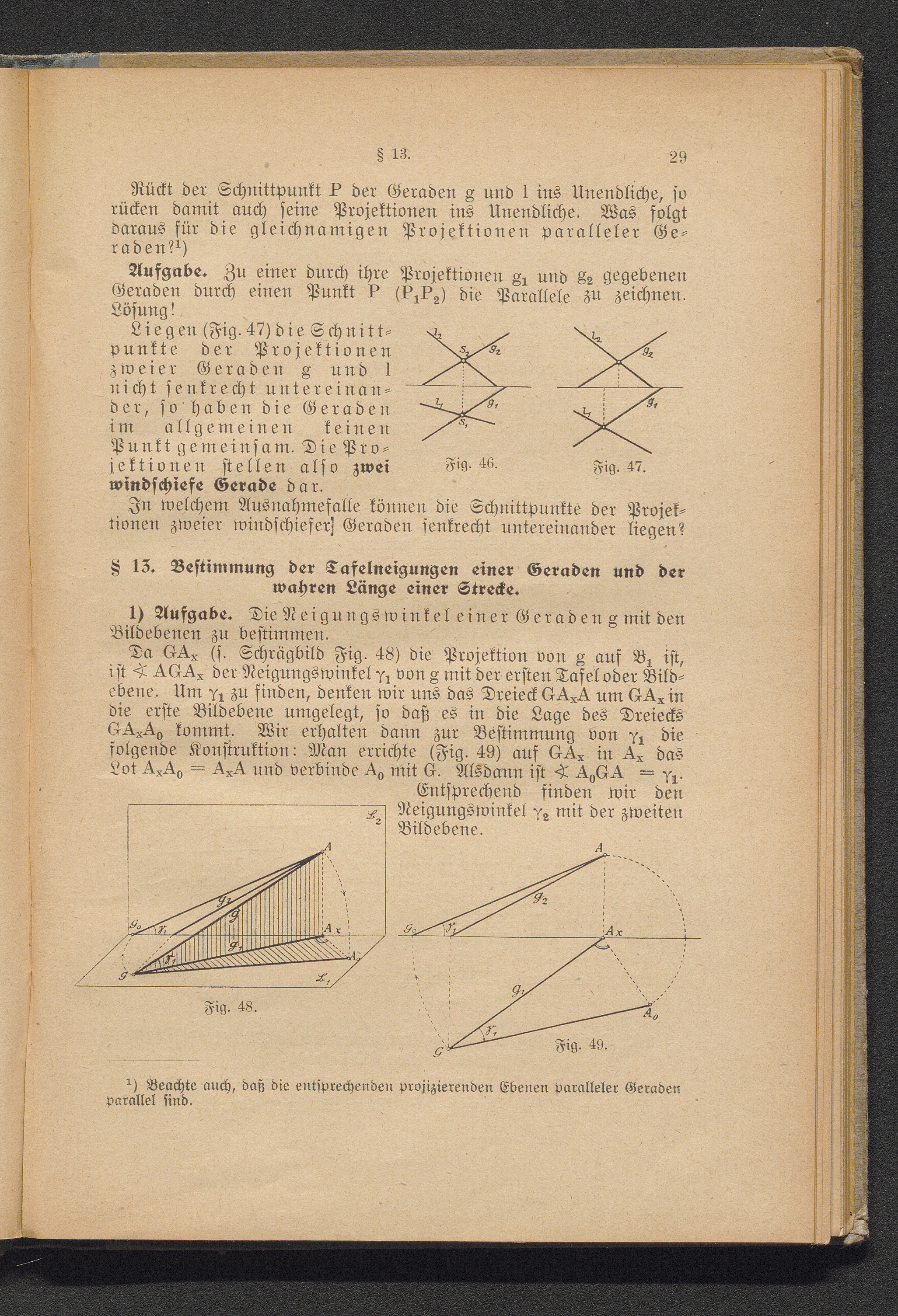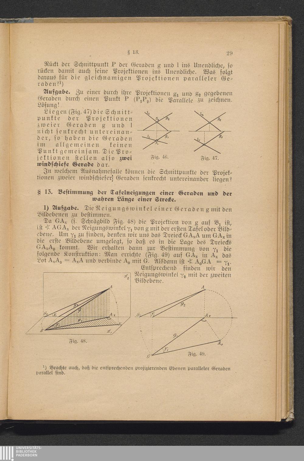 § 13. Bestimmungen der Tafelneigung einer Geraden undder wahren Länge einer Stre[...]