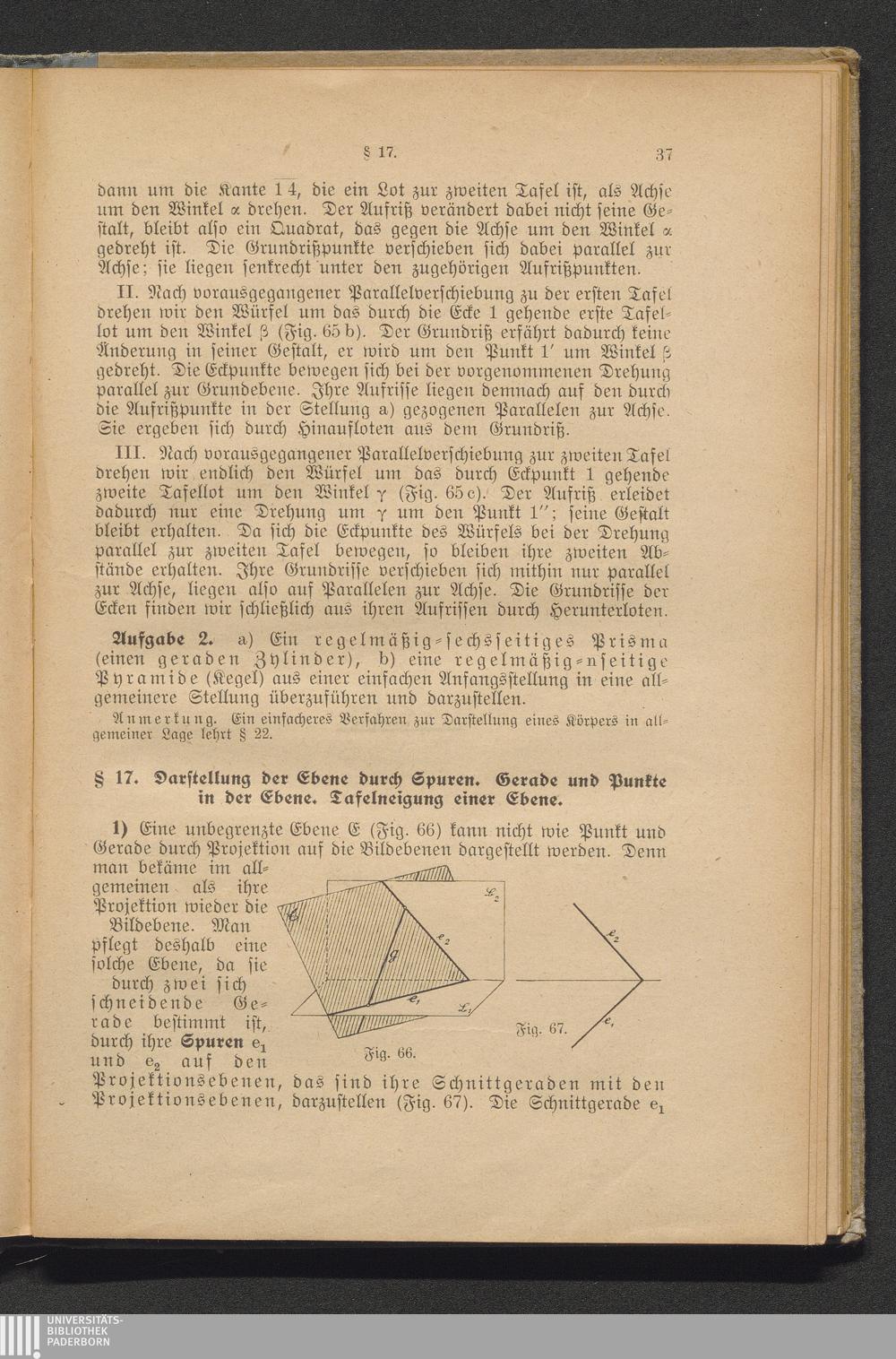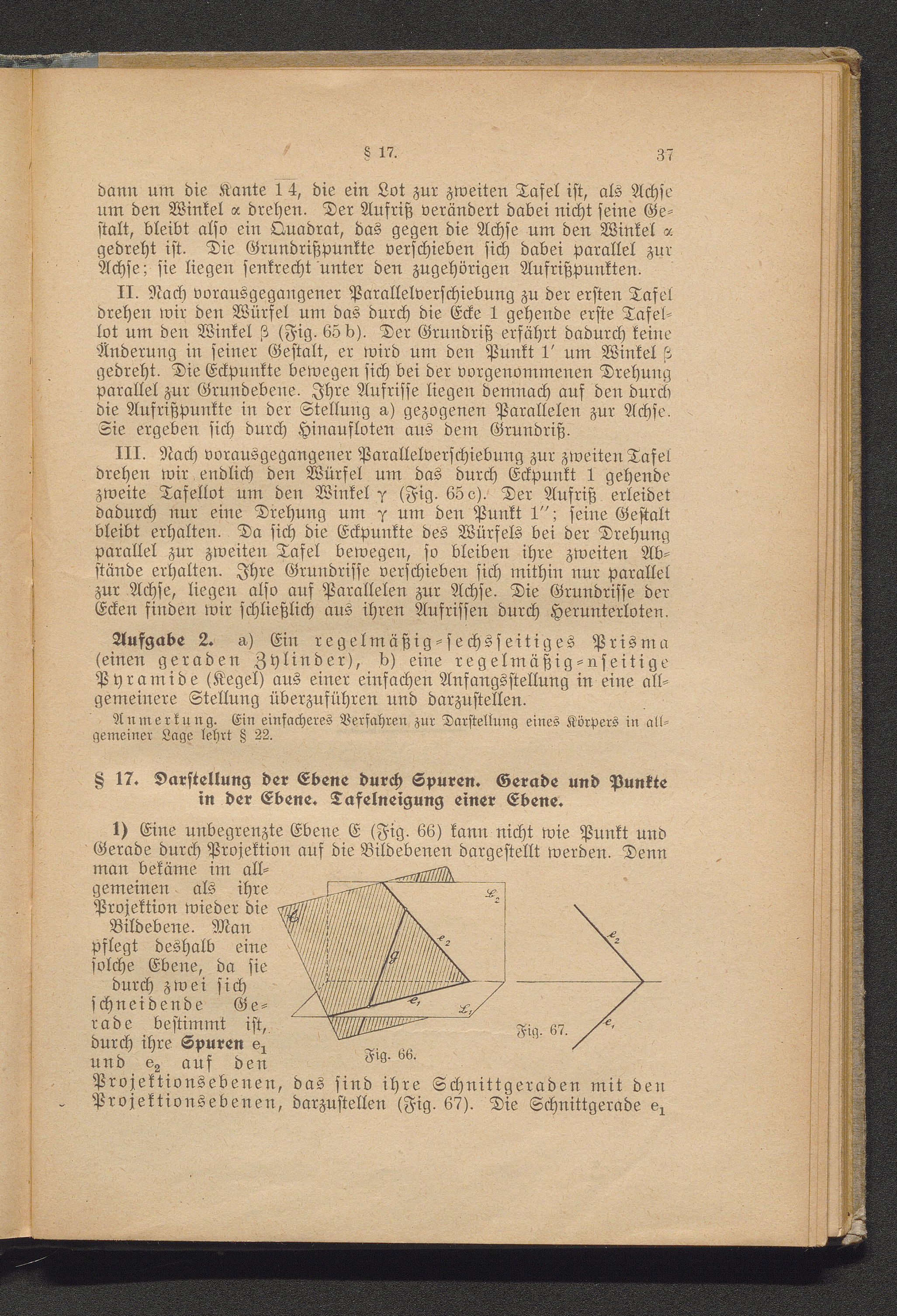 § 17. Darstellung der Ebene durch Spuren. Gerade und Punkte in der Ebene. Tafelneigung[...]