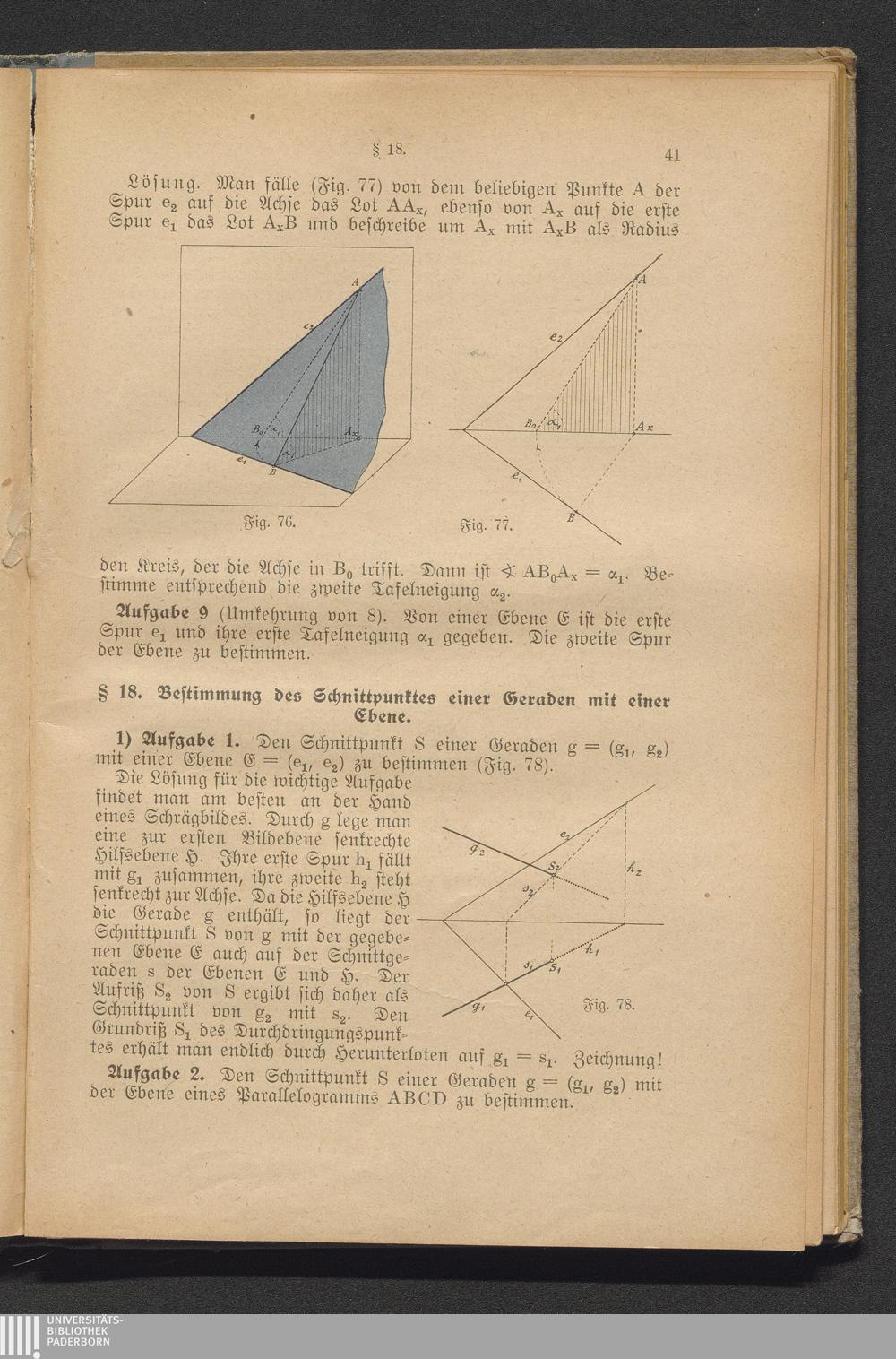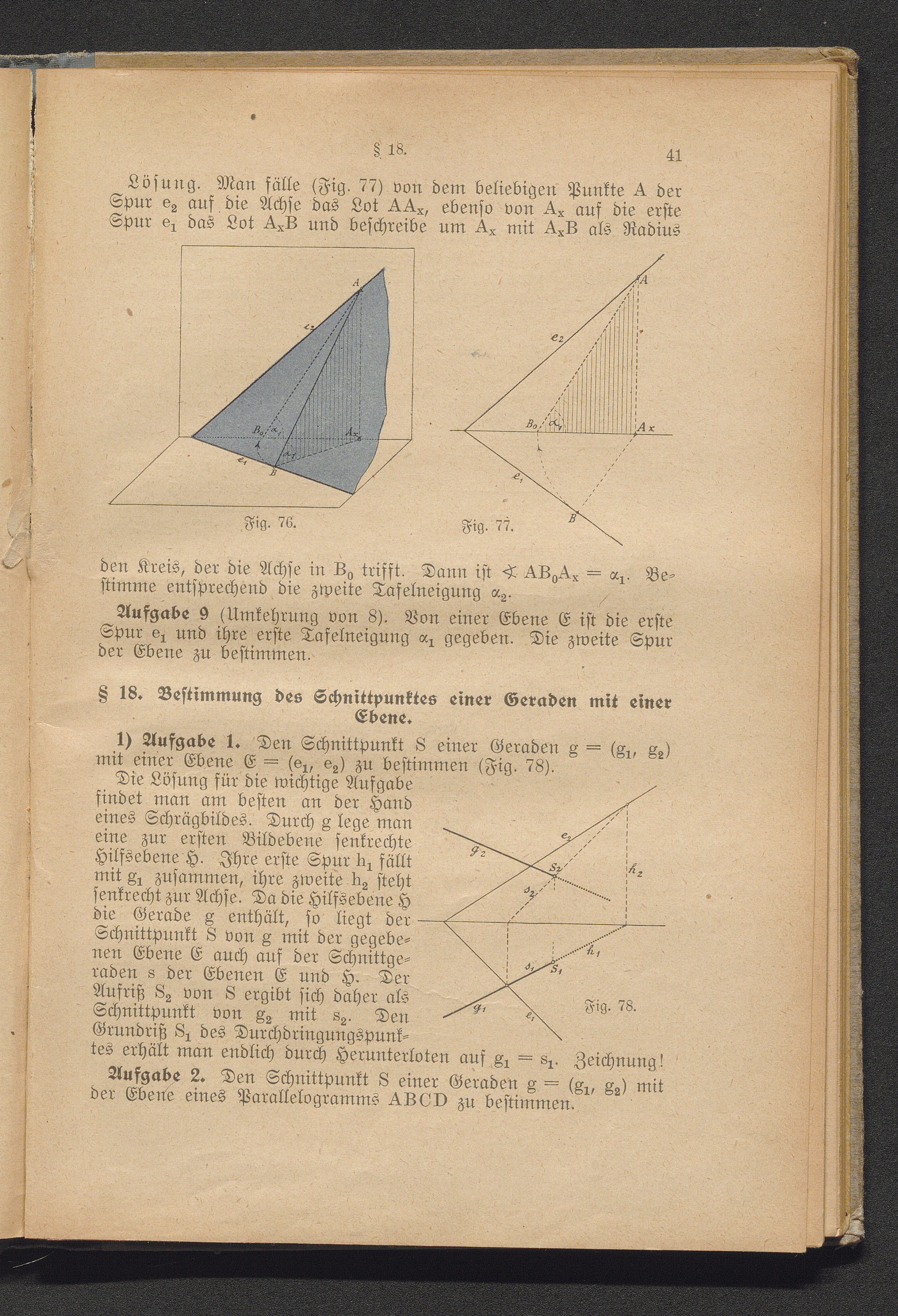§ 18. Bestimmung des Schnittpunktes einer Geraden mit einer Ebene.